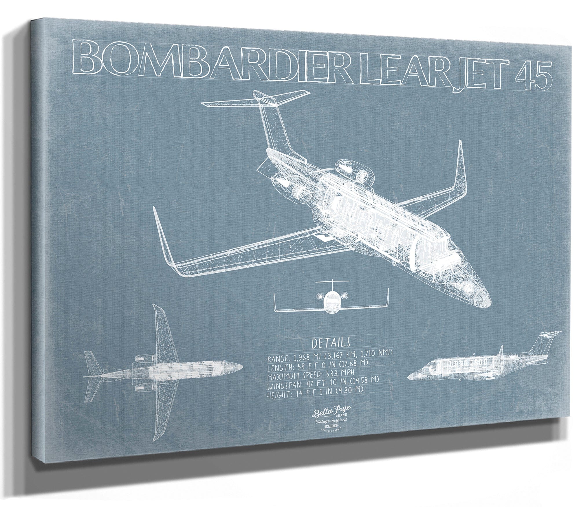 • Bella Frye Home & Garden > Decor > Artwork 24" x 18" / Stretched Canvas Wrap Learjet 45 Aircraft Blueprint Wall Art - Original Airplane Print
