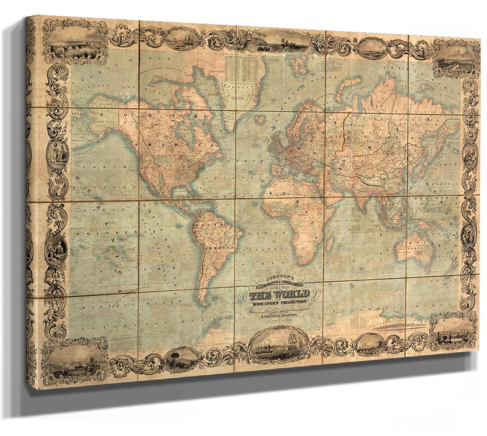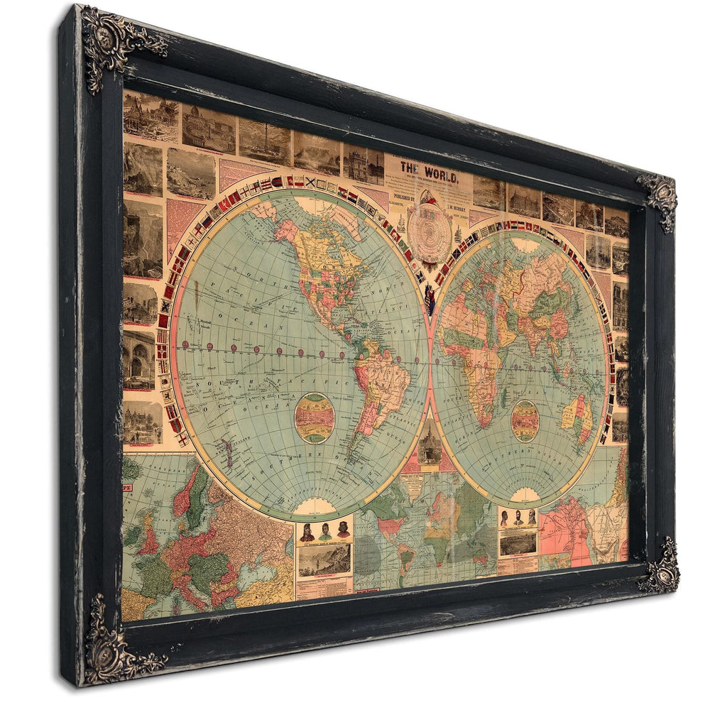 Framed World 1883 Vintage Map - Ornate Embellishment Frame with Print