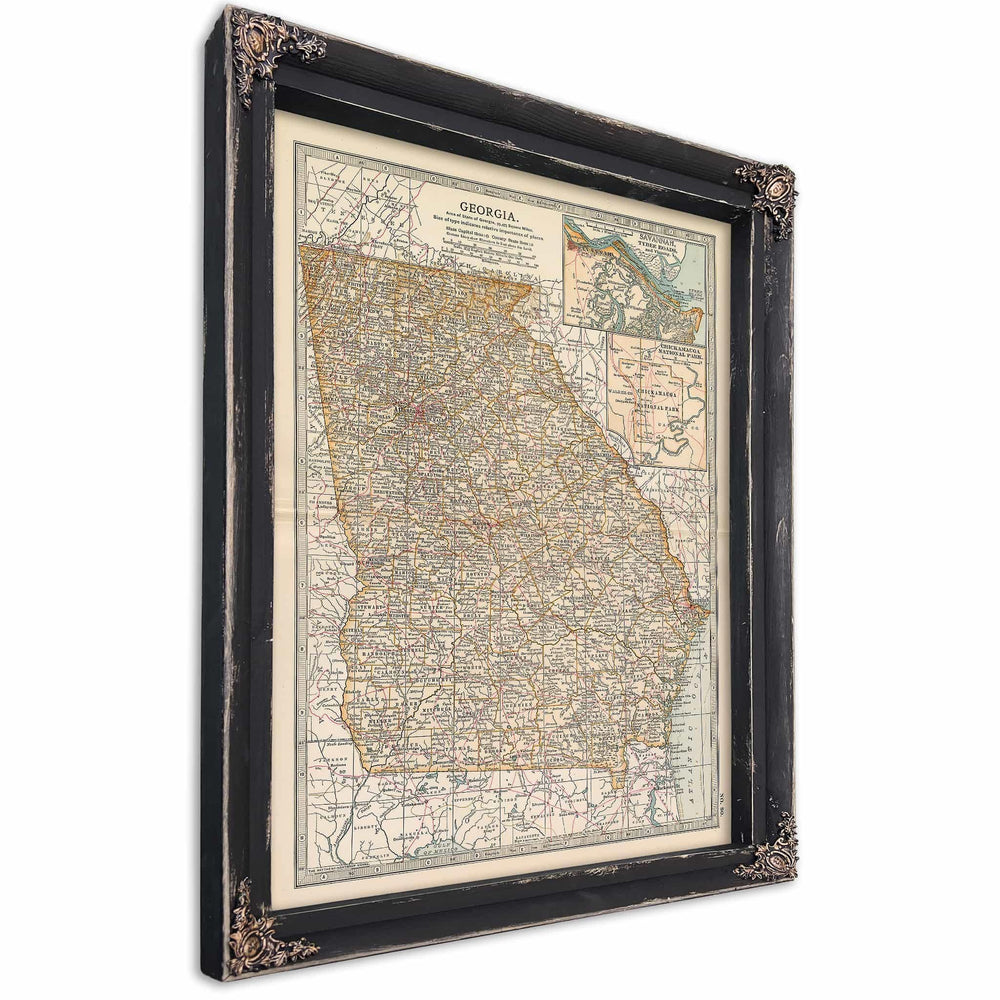 Framed Georgia Vintage Map - Ornate Embellishment Frame with Print