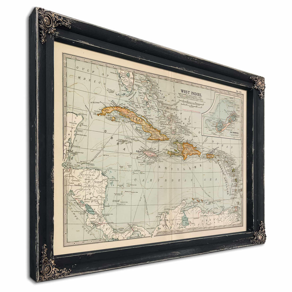 Framed West Indies Vintage Map - Ornate Embellishment Frame with Print