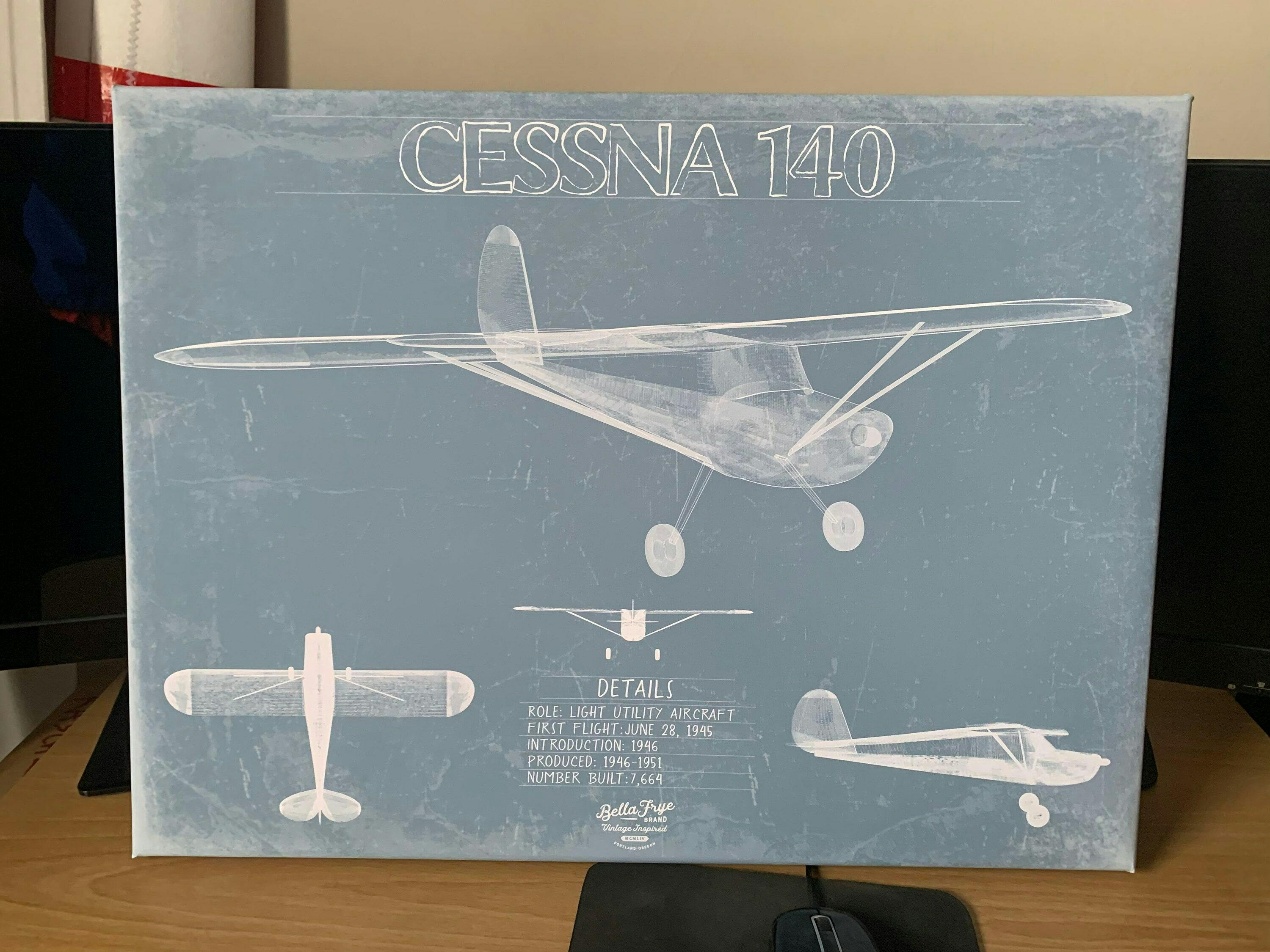 • Bella Frye Home & Garden > Decor > Artwork Cessna 140 Aircraft Blueprint Wall Art - Original Airplane Print
