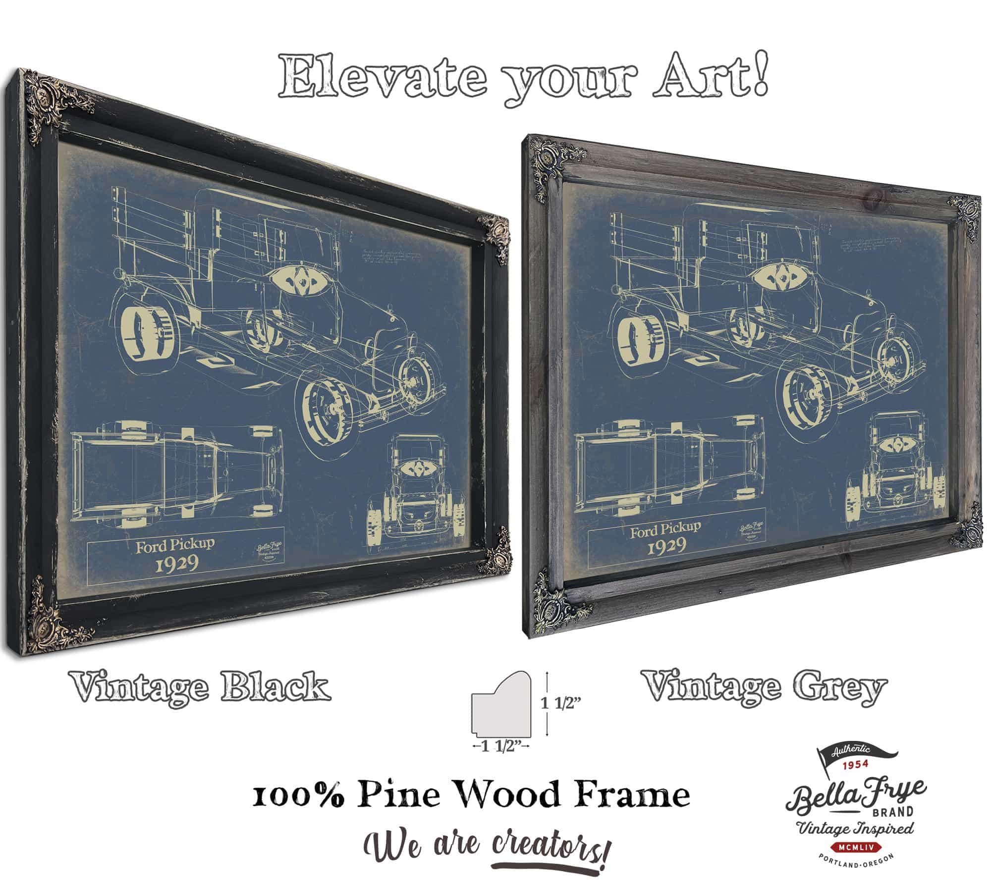 • Bella Frye 1929 Ford Pickup, Truck Model Mancave Blueprint Art