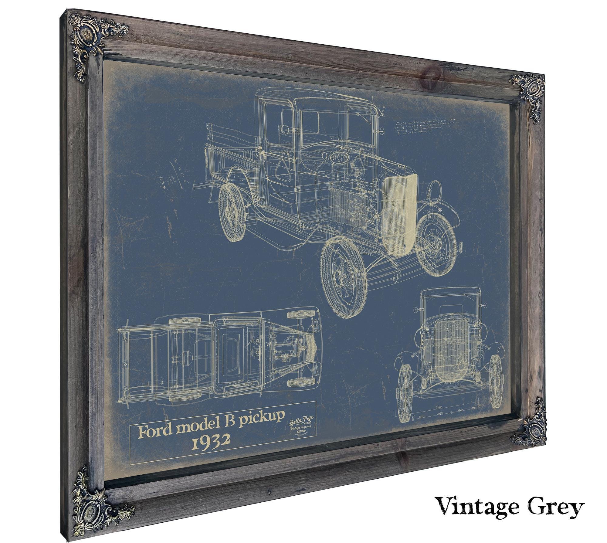 • Bella Frye 1932 Ford Model B Pickup Blueprint Art: Vintage Automotive Print