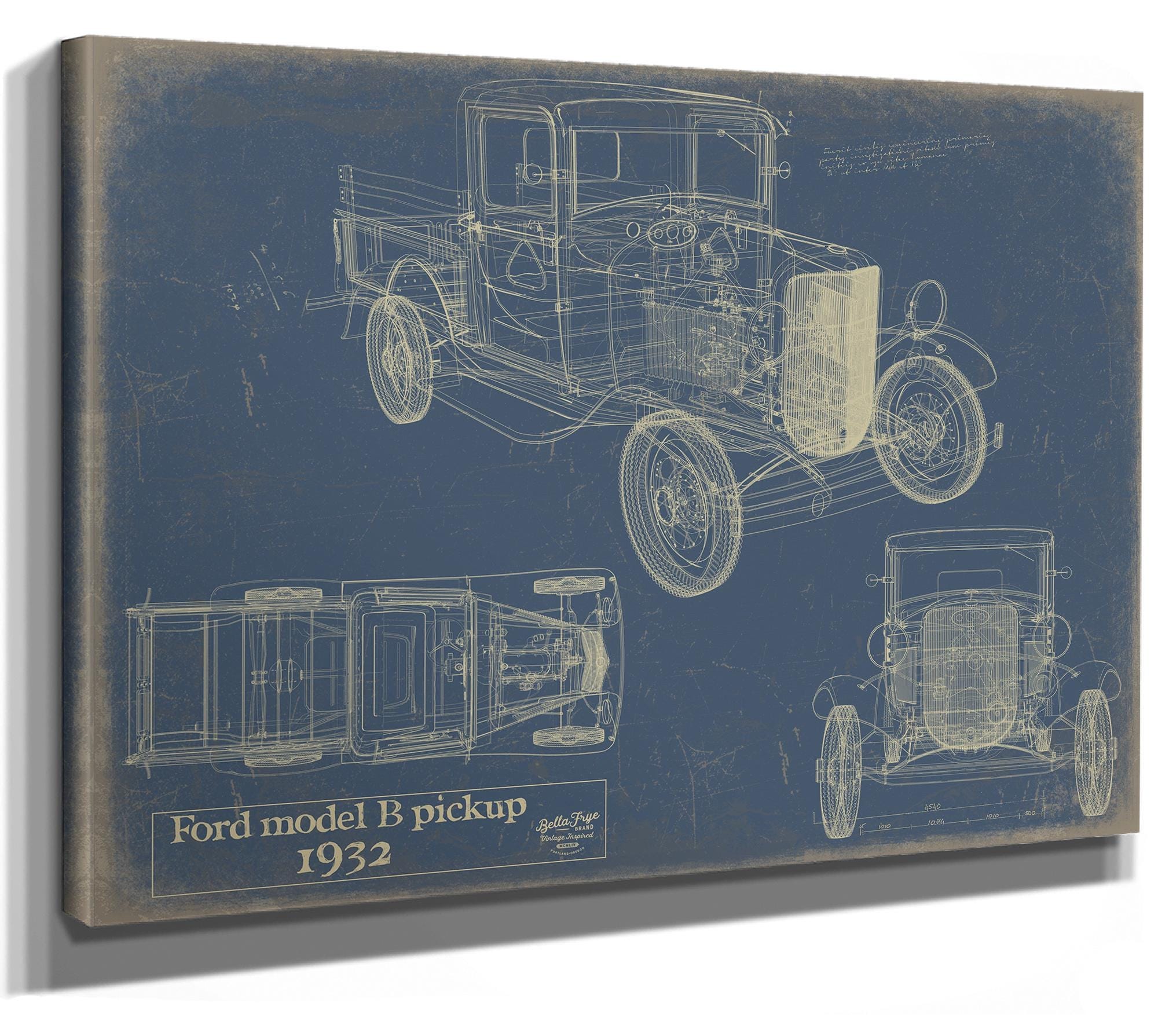 1932 Ford Model B Pickup Blueprint Art: Vintage Automotive Print