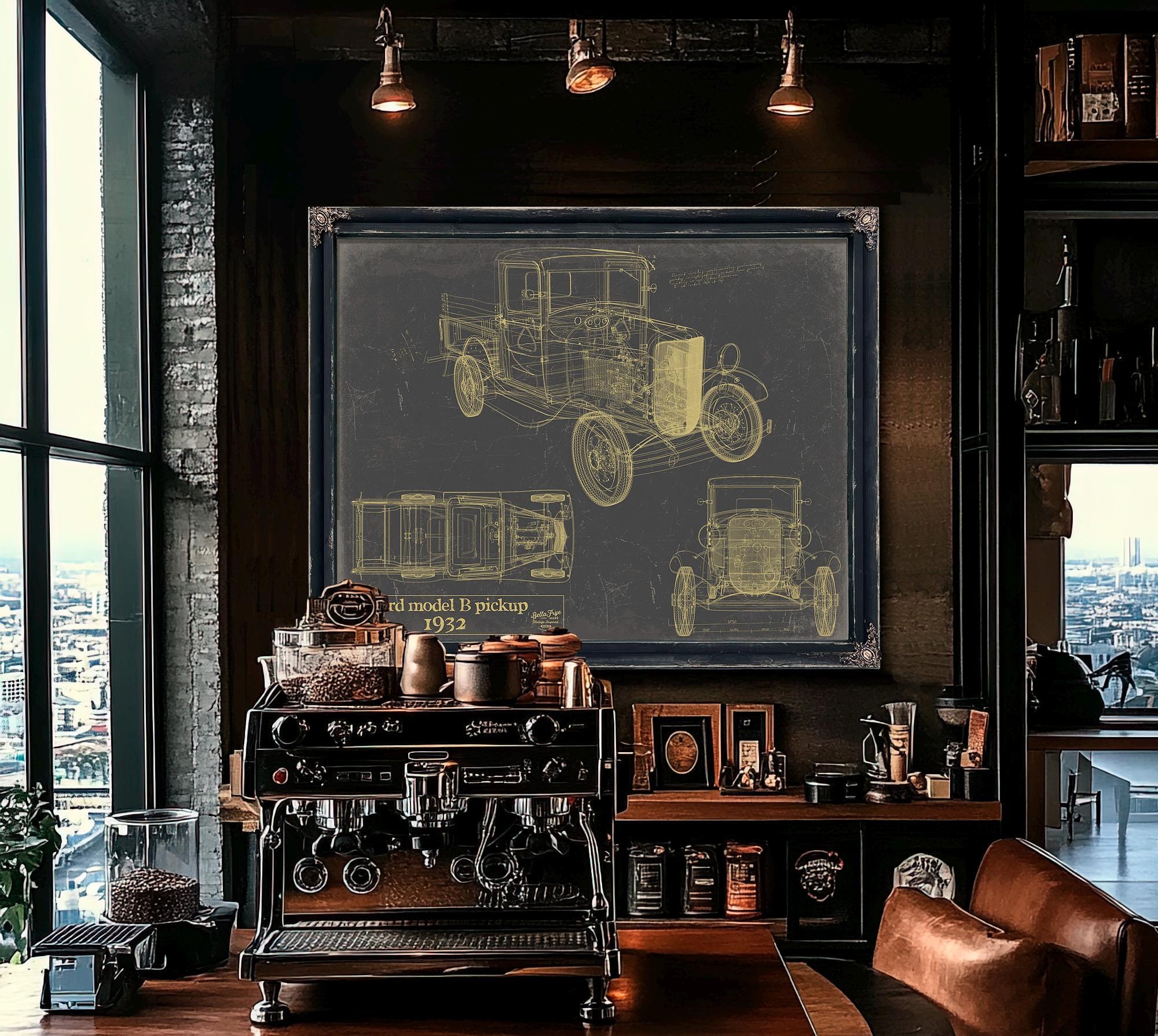 • 1932 Ford Model B Pickup Blueprint Art: Vintage Automotive Print