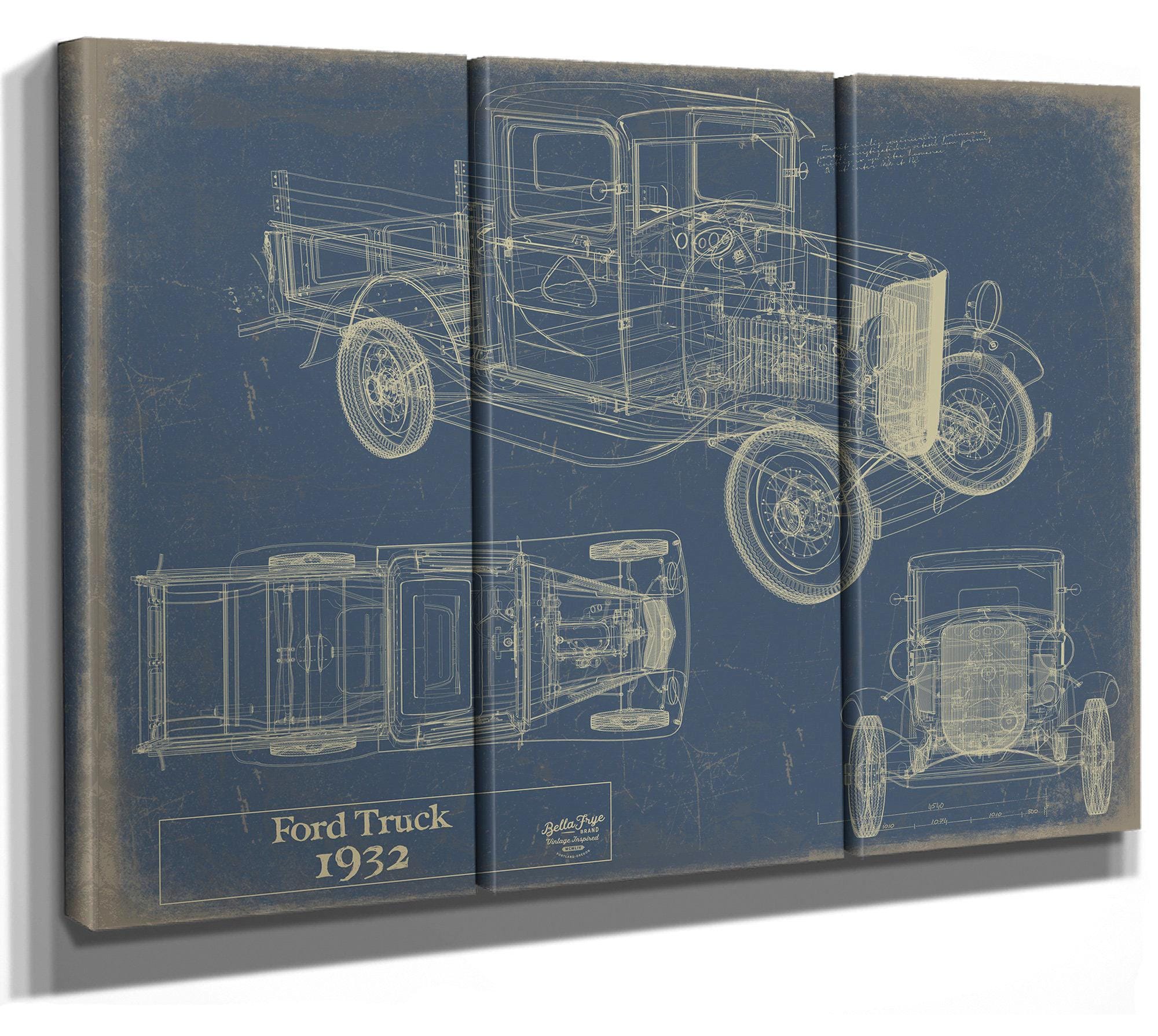 • Bella Frye 1932 Ford Truck Blueprint Art: Vintage Auto Patent Print