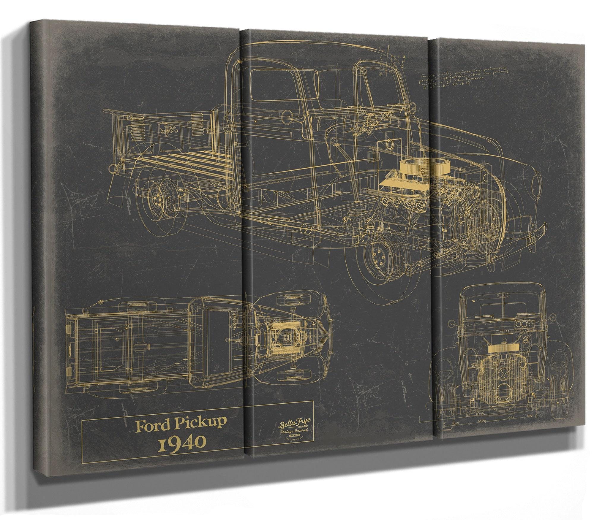 • Bella Frye 1940 Ford Pickup, Truck Model Mancave Blueprint Art