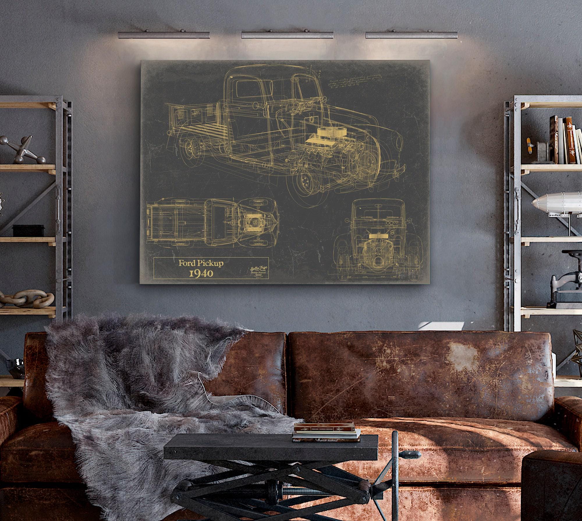 1940 Ford Pickup, Truck Model Mancave Blueprint Art
