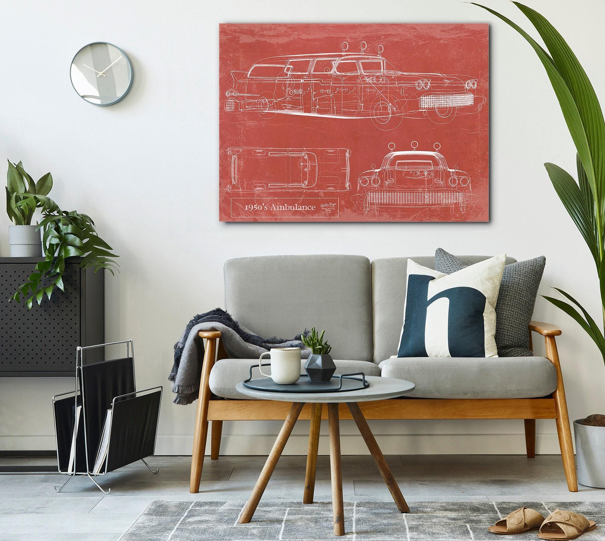 • Bella Frye 1950's Ambulance Car Blueprint - Gifts for Dad  - Mancave Art