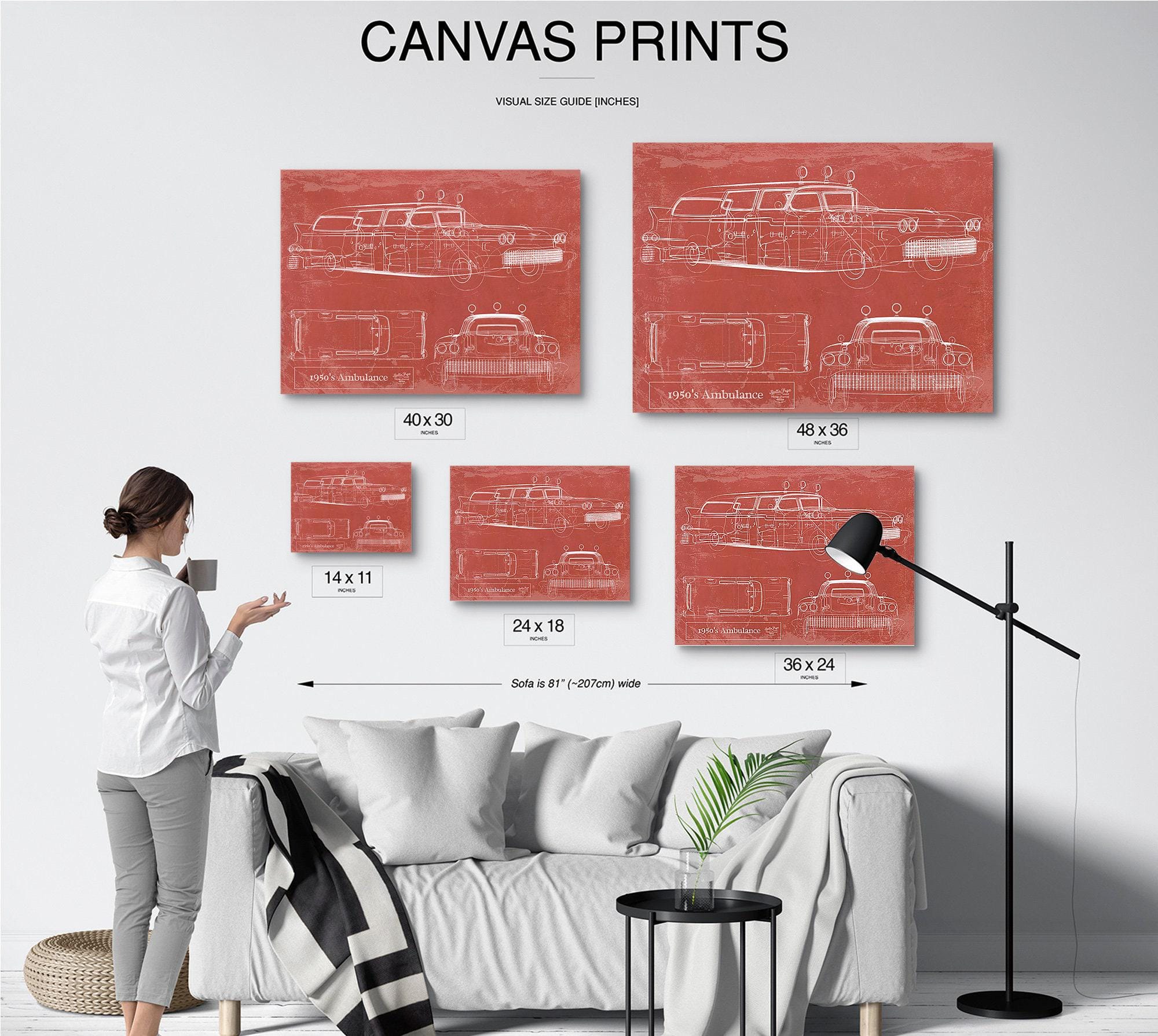 1950's Ambulance Car Blueprint - Gifts for Dad - Mancave Art