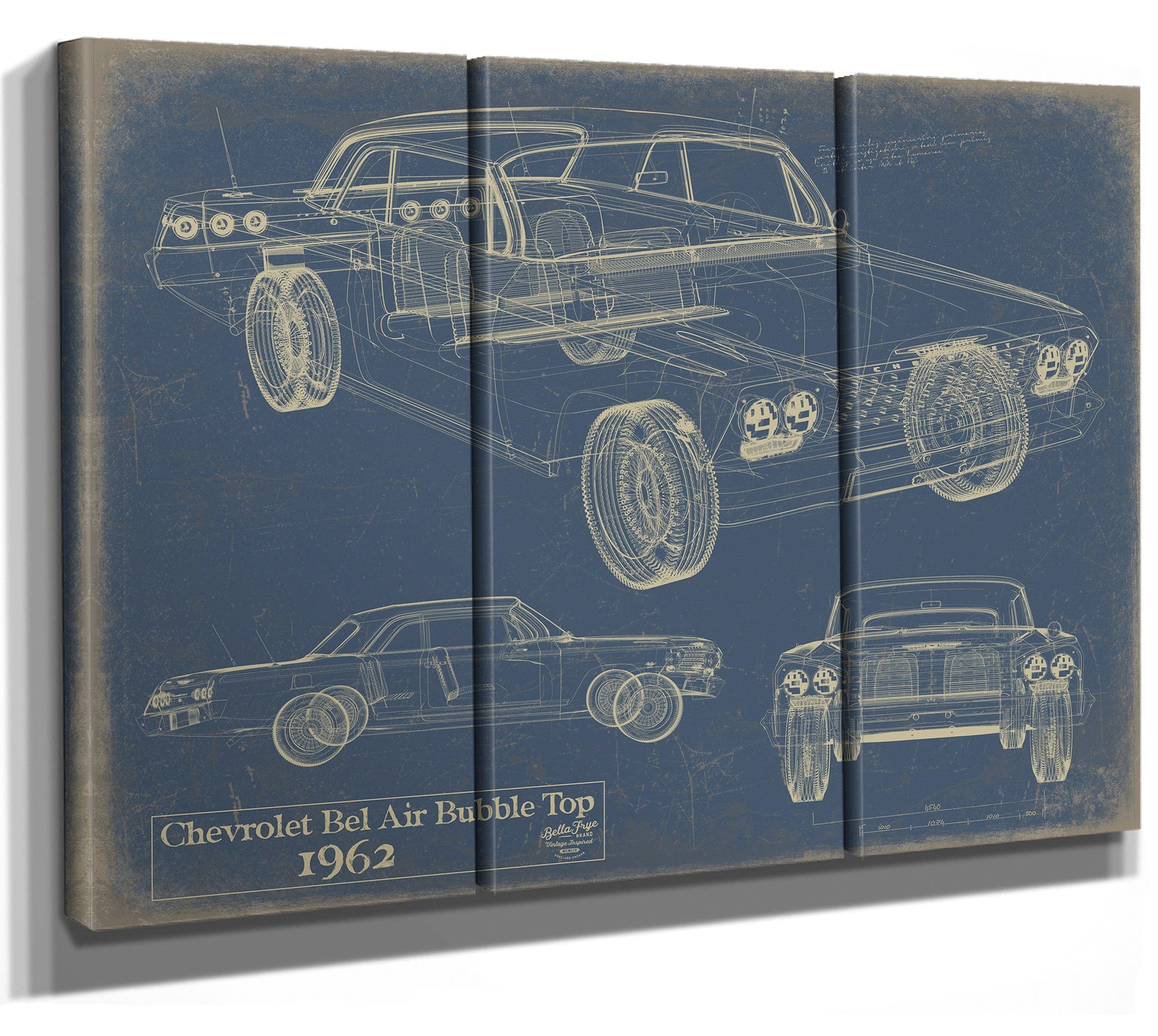 • Bella Frye Home & Garden > Decor > Artwork 36" x 24" / 3 Panel Canvas Wrap / Blue 1962 Chevrolet Bel Air Bubble Top  Original Artwork