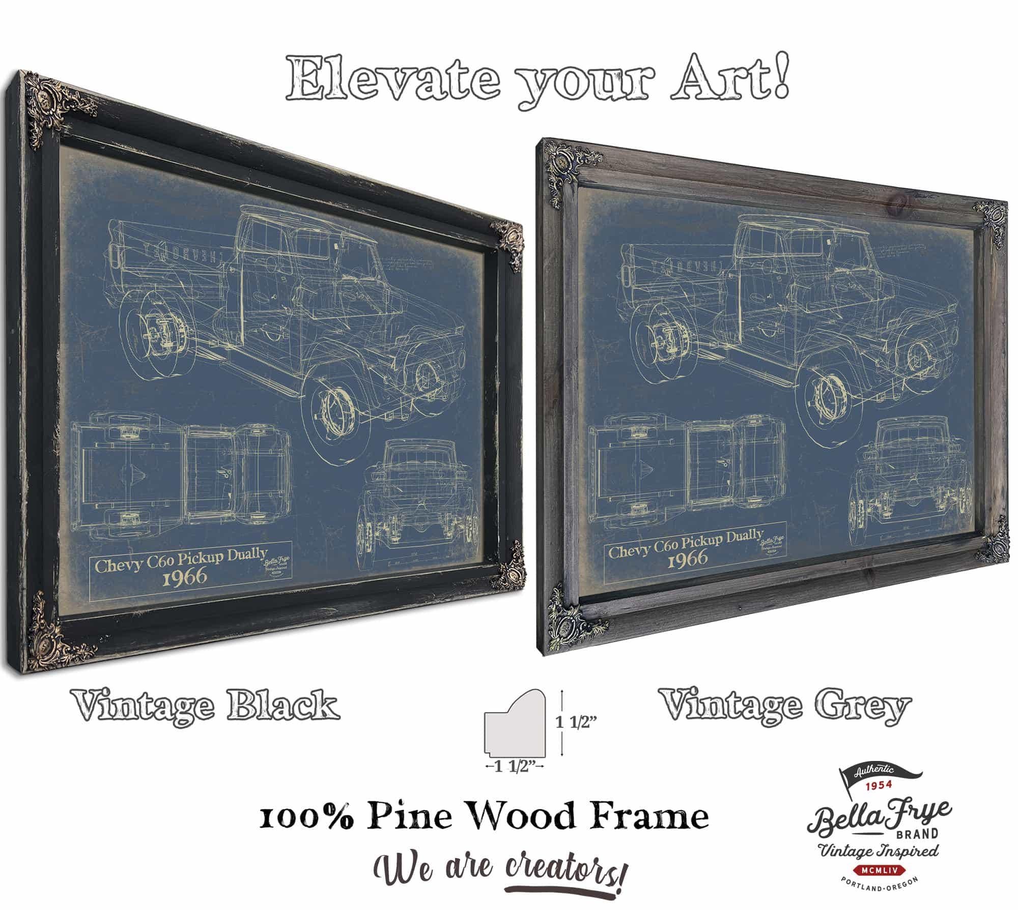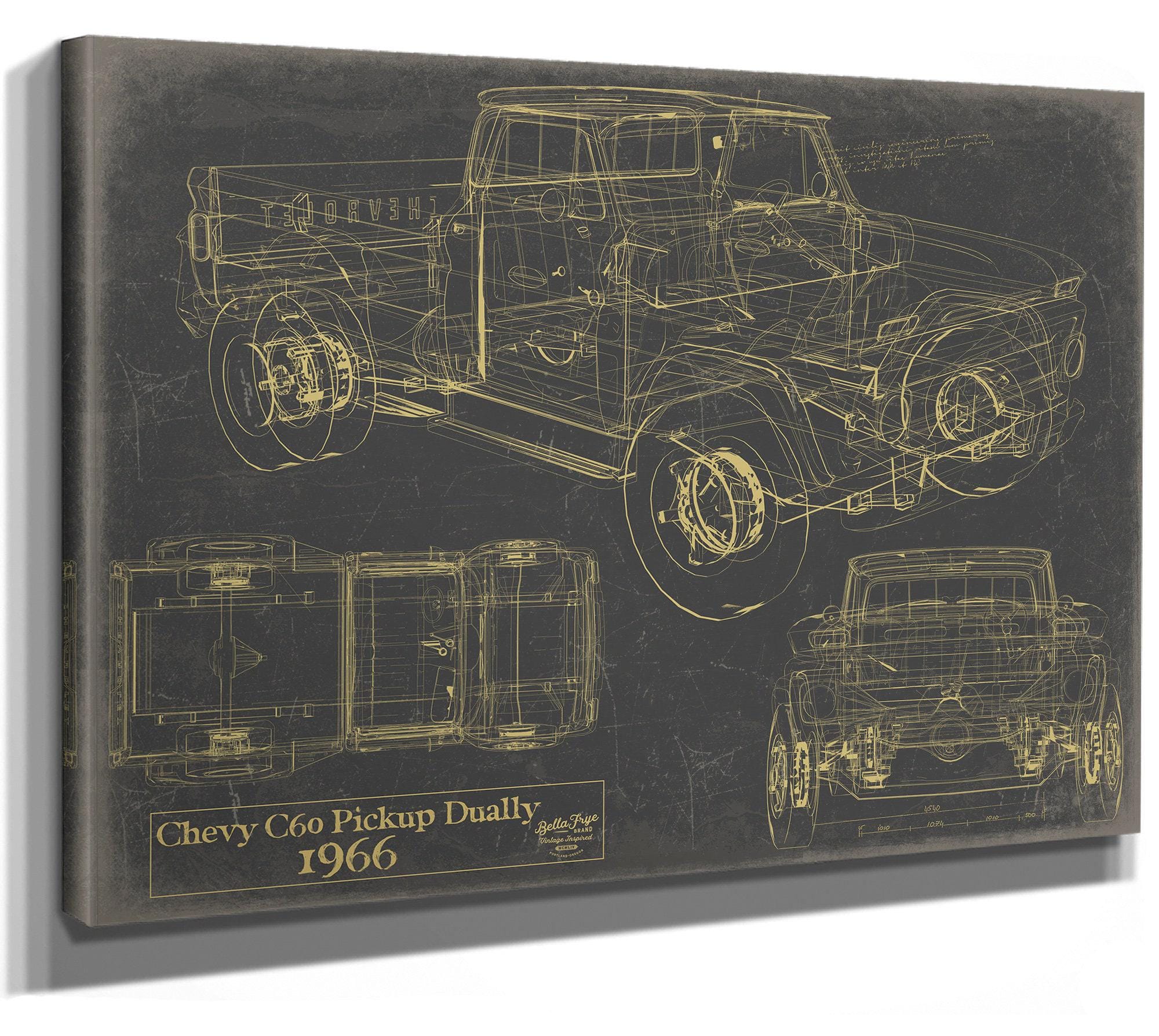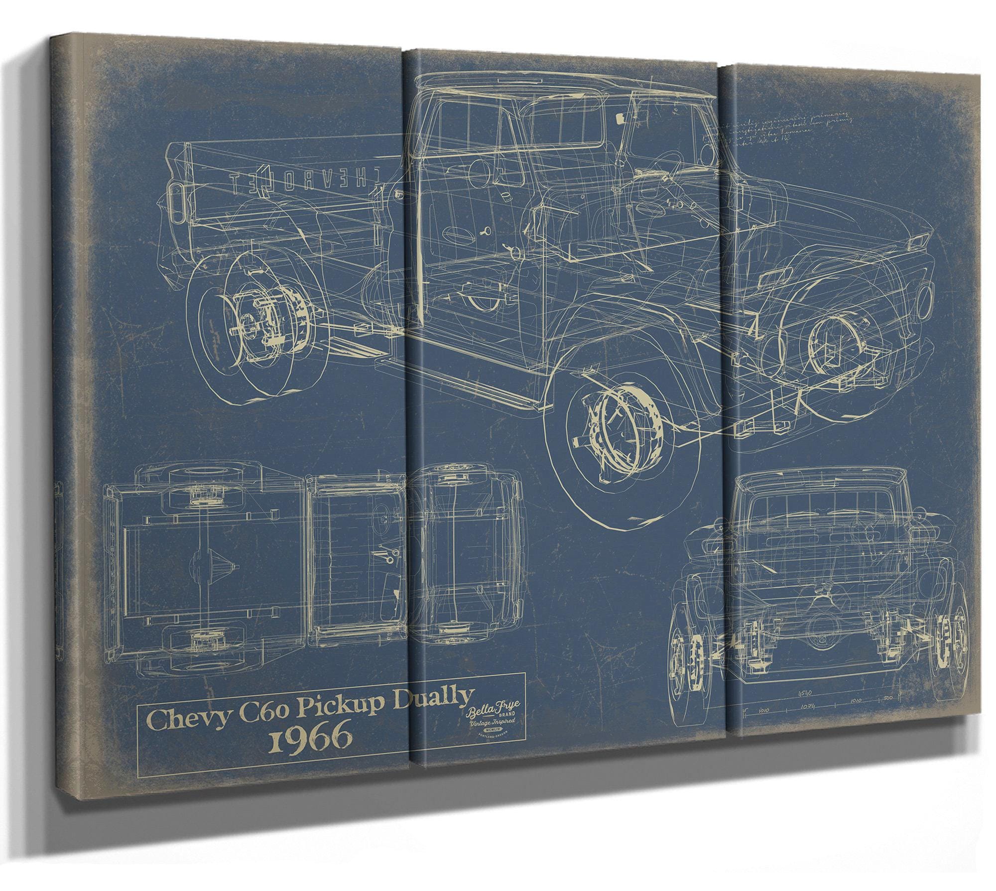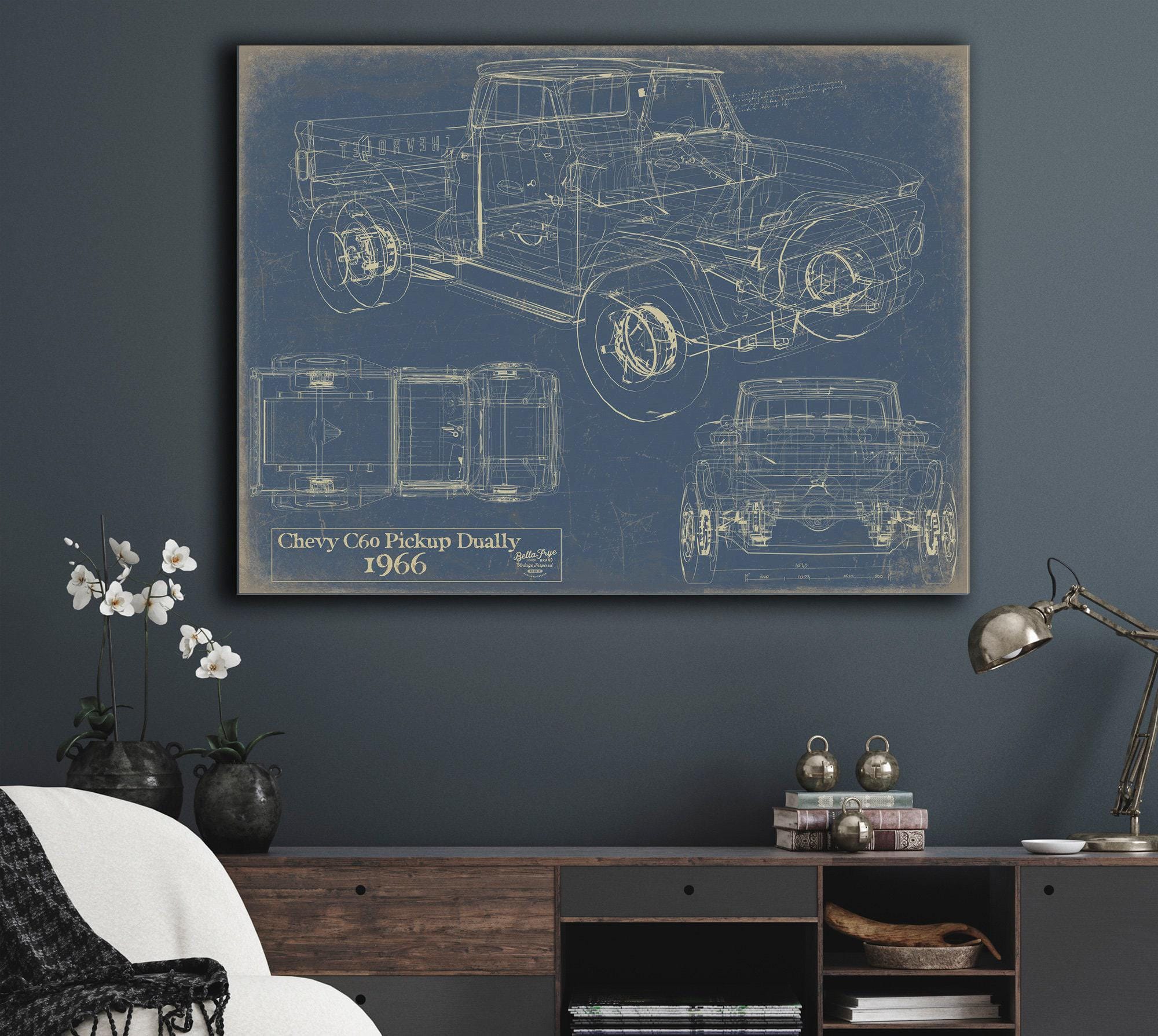 • Bella Frye 1966 Chevy C60 Dually Pickup Truck Print,  Original Blueprint Canvas, Framed, or Unframed Art