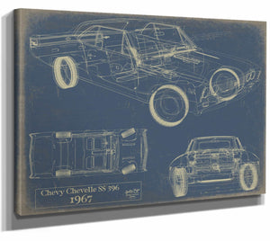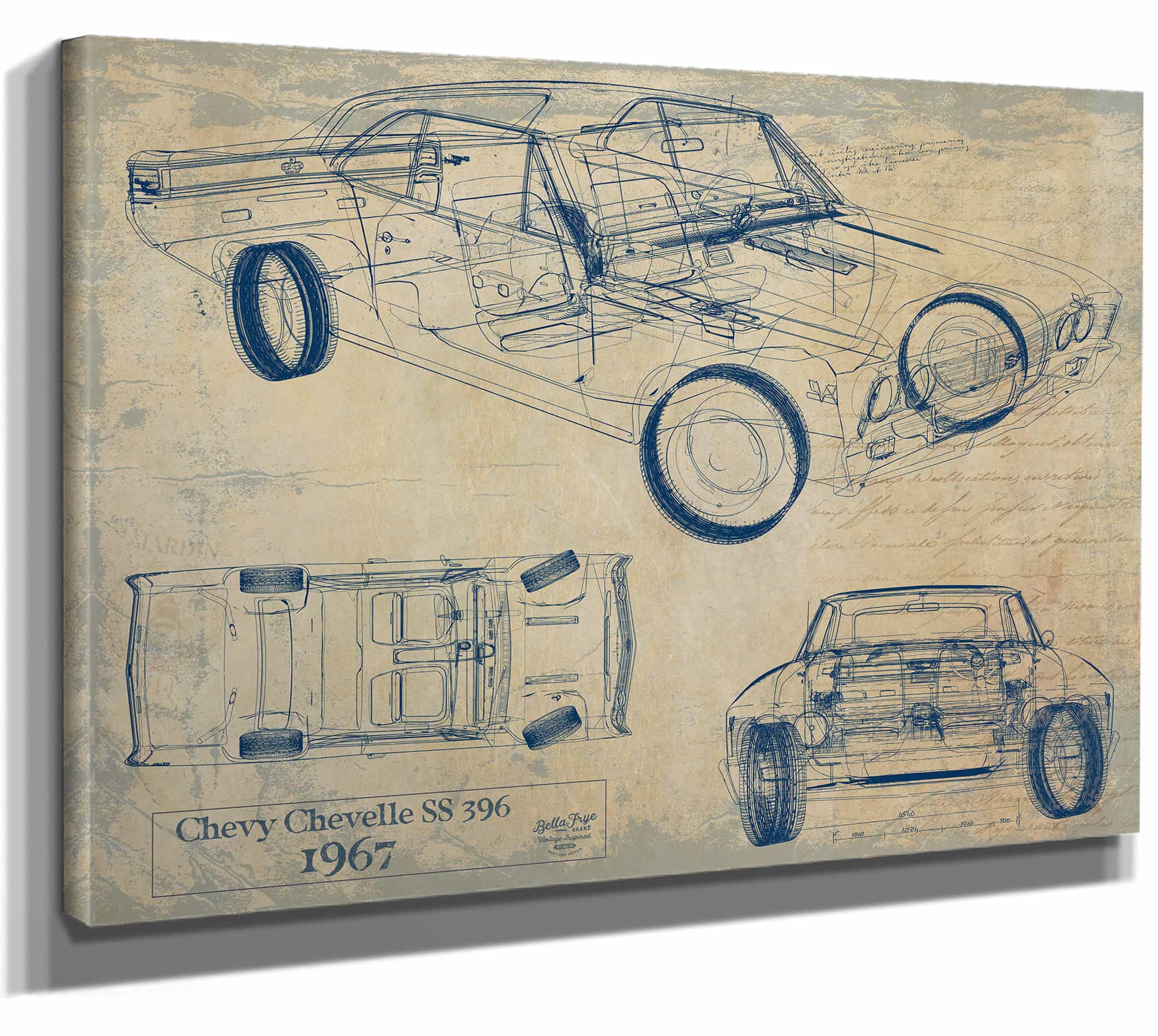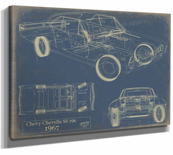 • Bella Frye Home & Garden > Decor > Artwork 24" x 18" / Stretched Canvas Wrap / Blue 1967 Chevrolet Chevelle Ss 396  Original Artwork