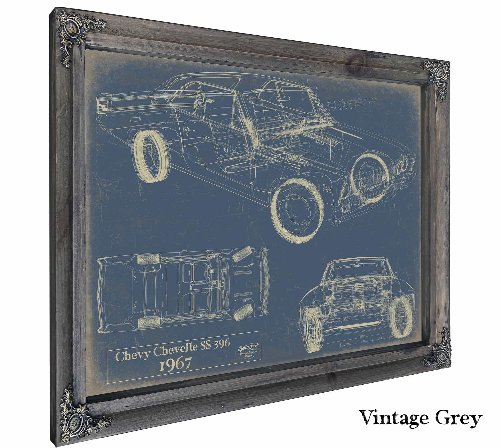 • Bella Frye Home & Garden > Decor > Artwork 24" x 18" / Grey Frame / Blue 1967 Chevrolet Chevelle Ss 396  Original Artwork