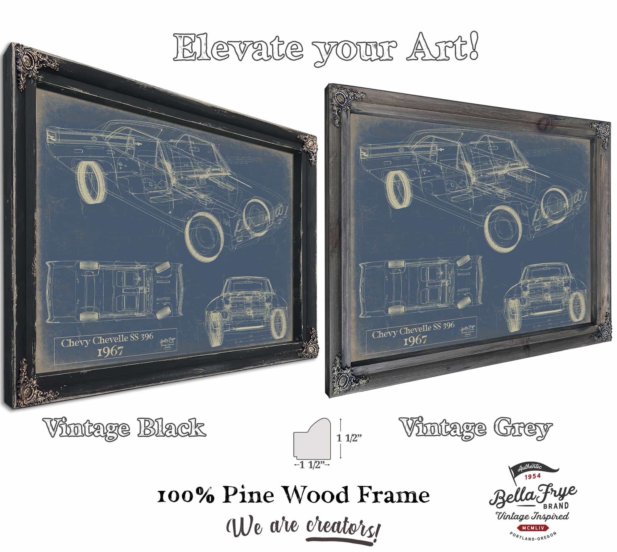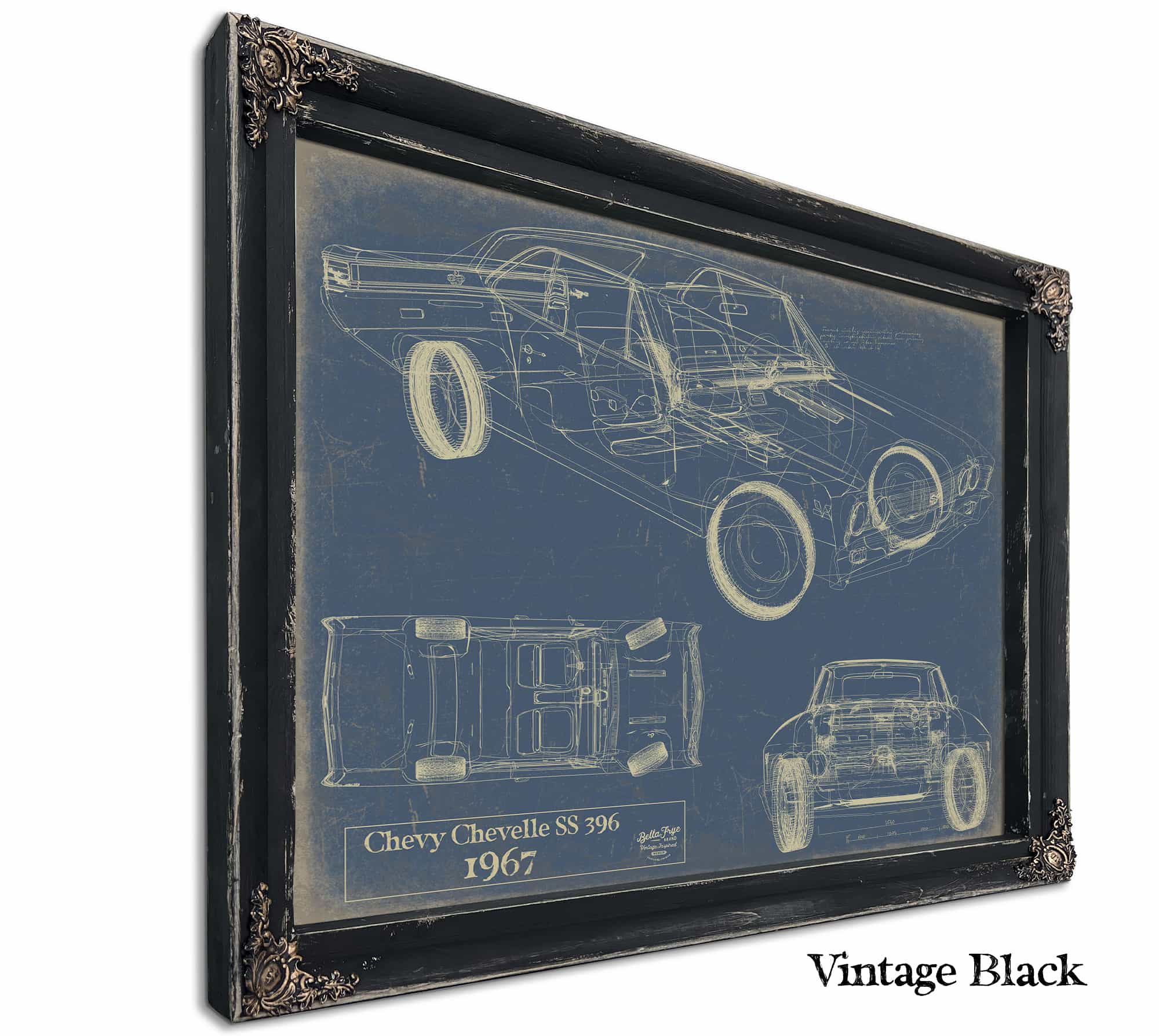 • Bella Frye Home & Garden > Decor > Artwork 24" x 18" / Black Frame / Blue 1967 Chevrolet Chevelle Ss 396  Original Artwork