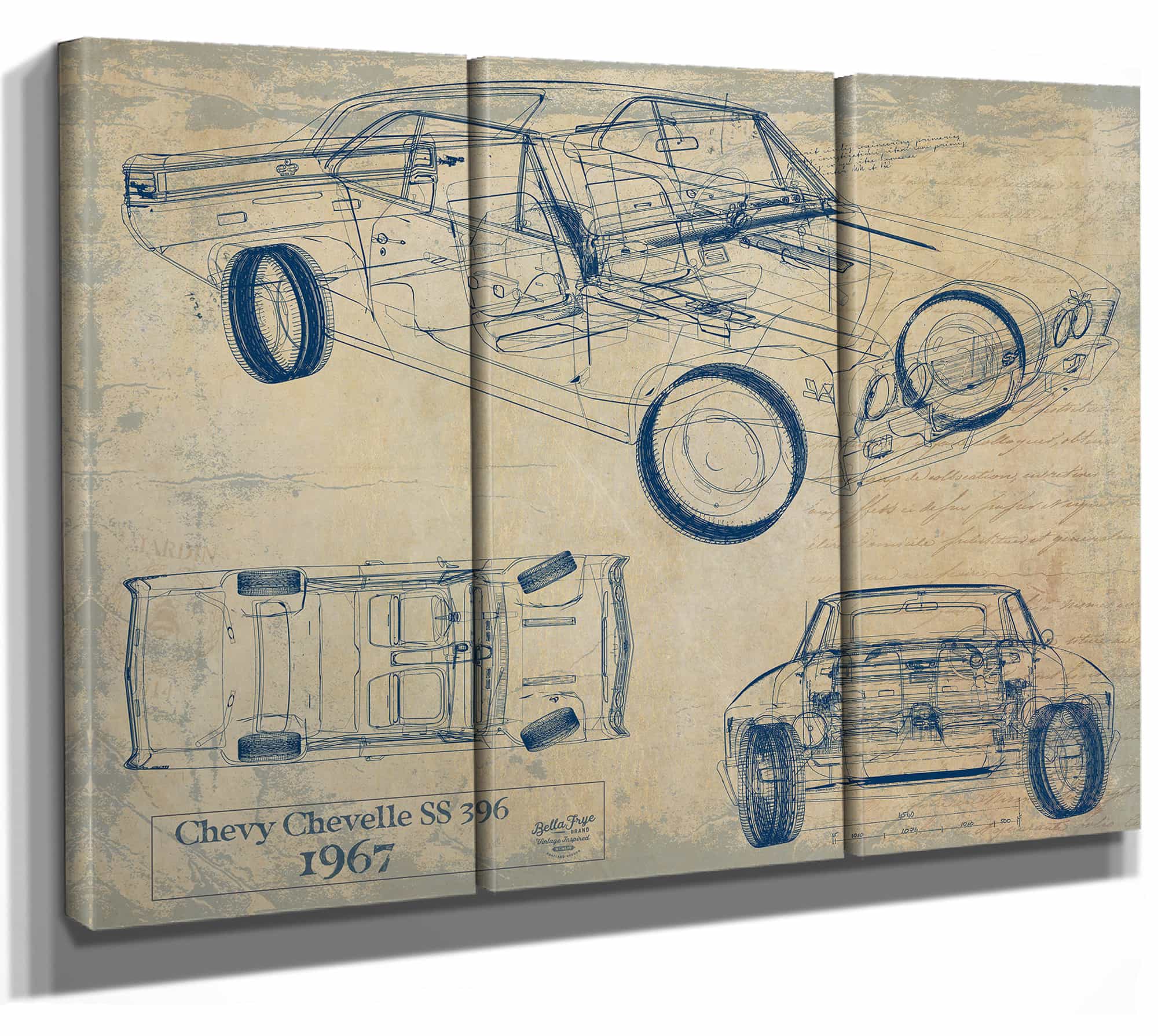 • Bella Frye Home & Garden > Decor > Artwork 36" x 24" / 3 Panel Canvas Wrap / Blue 1967 Chevrolet Chevelle Ss 396  Original Artwork