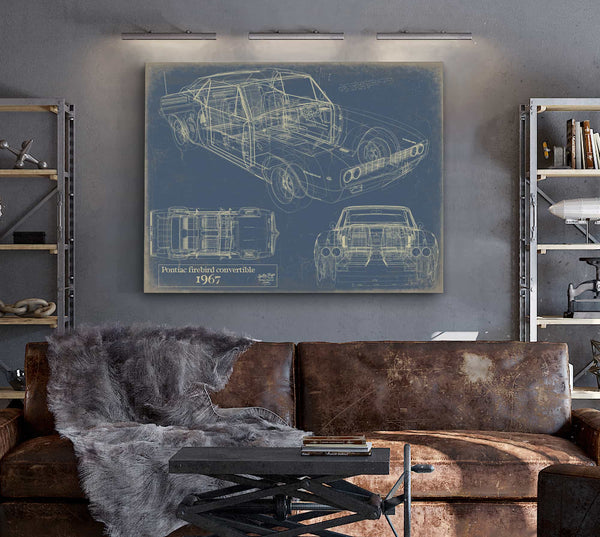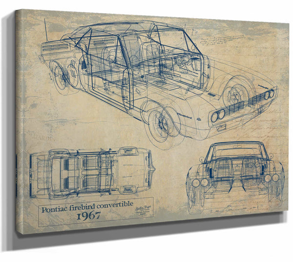 • Bella Frye Home & Garden > Decor > Artwork 24" x 18" / Stretched Canvas Wrap / Blue 1967 Pontiac Firebird Convertible  Original Artwork
