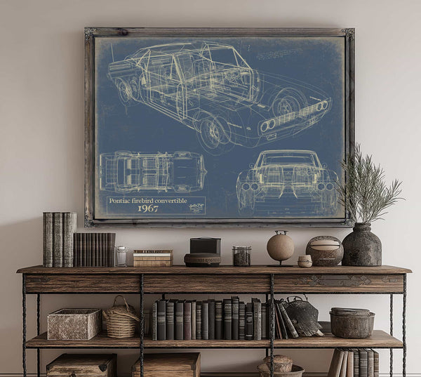 • Bella Frye Home & Garden > Decor > Artwork 24" x 18" / Grey Frame / Blue 1967 Pontiac Firebird Convertible  Original Artwork