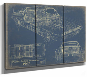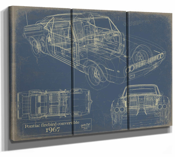 • Bella Frye Home & Garden > Decor > Artwork 36" x 24" / 3 Panel Canvas Wrap / Blue 1967 Pontiac Firebird Convertible  Original Artwork