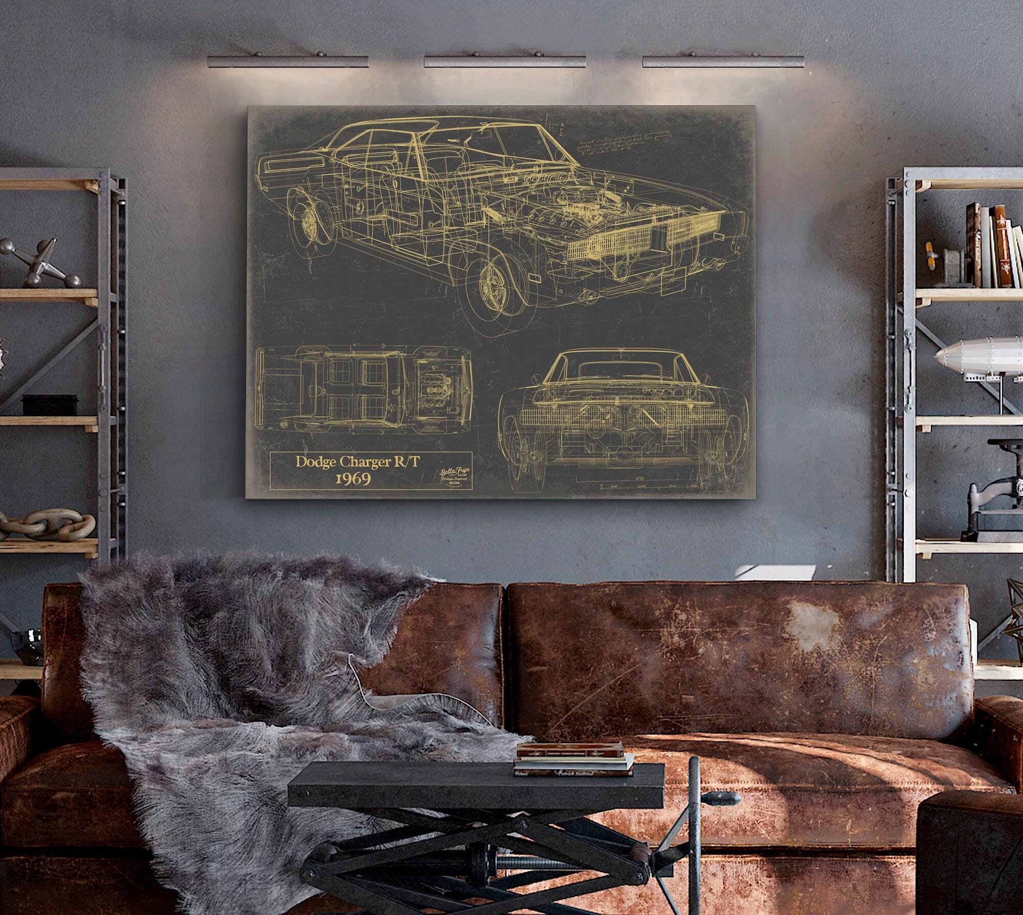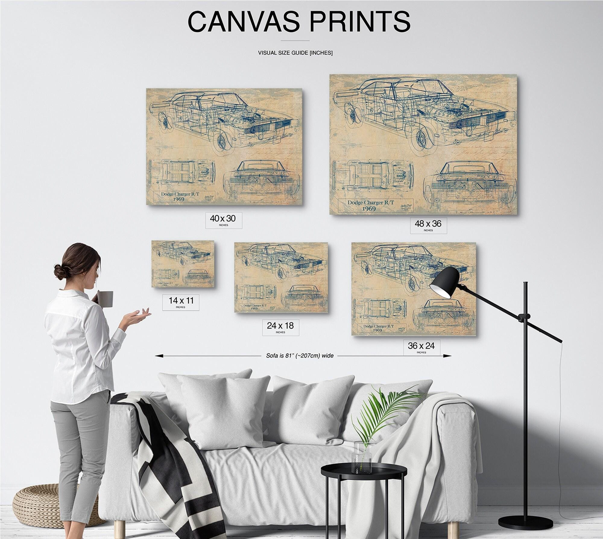 • 1969 Car Model Print,  Original Blueprint Canvas