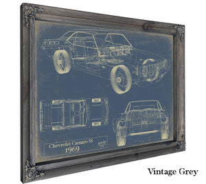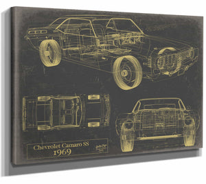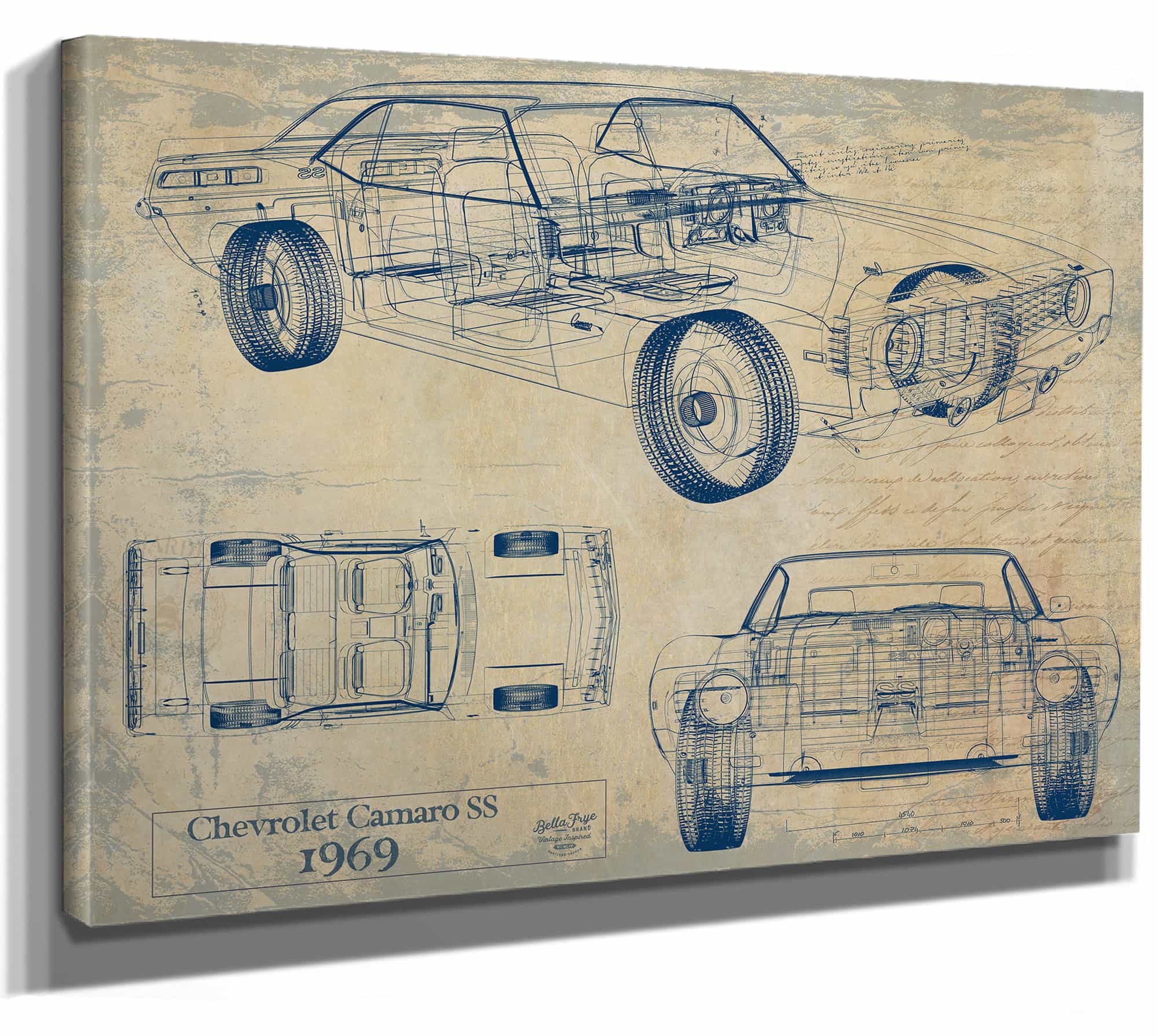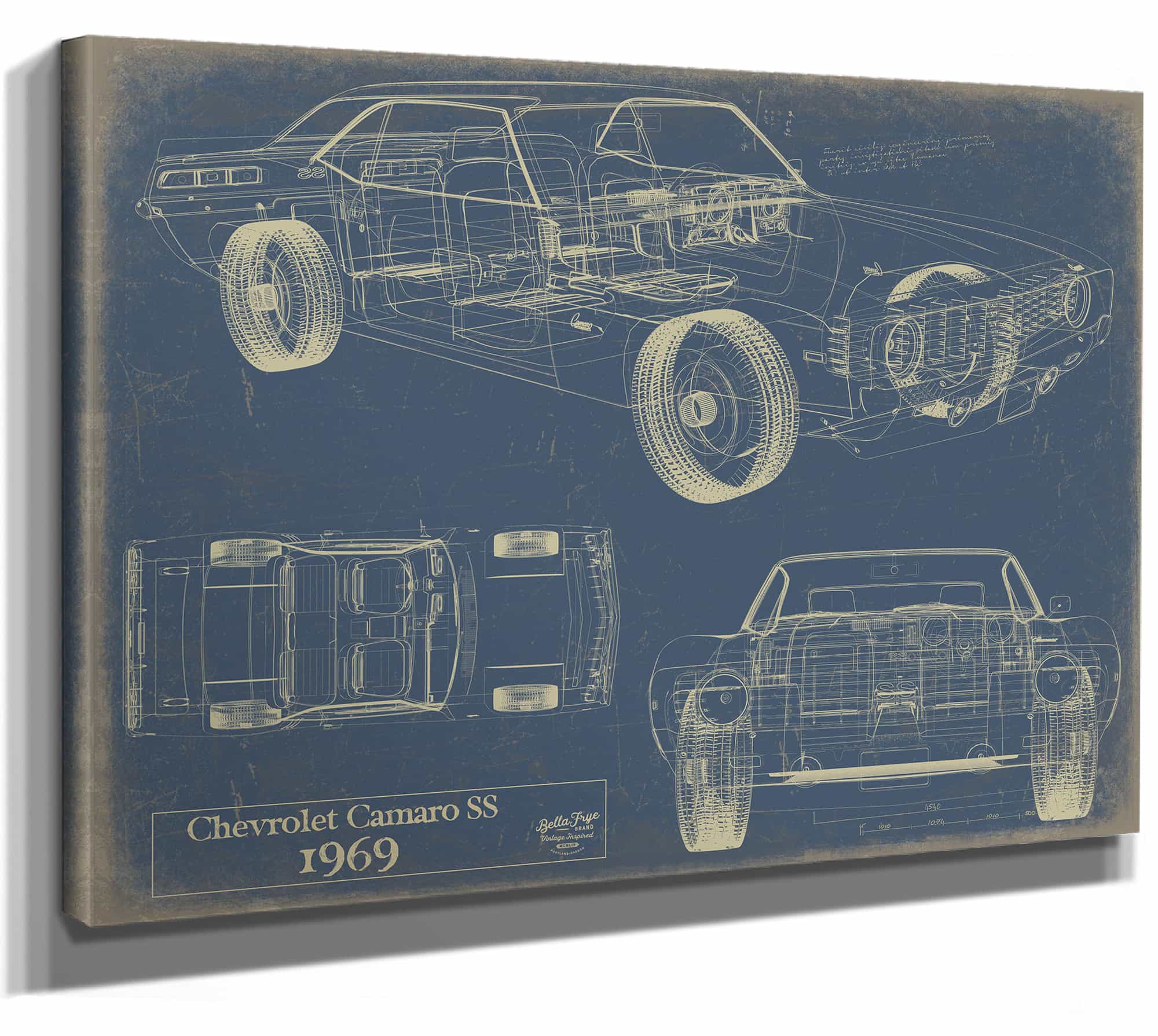• Bella Frye Home & Garden > Decor > Artwork 24" x 18" / Stretched Canvas Wrap / Blue 1969 Chevrolet Camaro Ss  Original Artwork