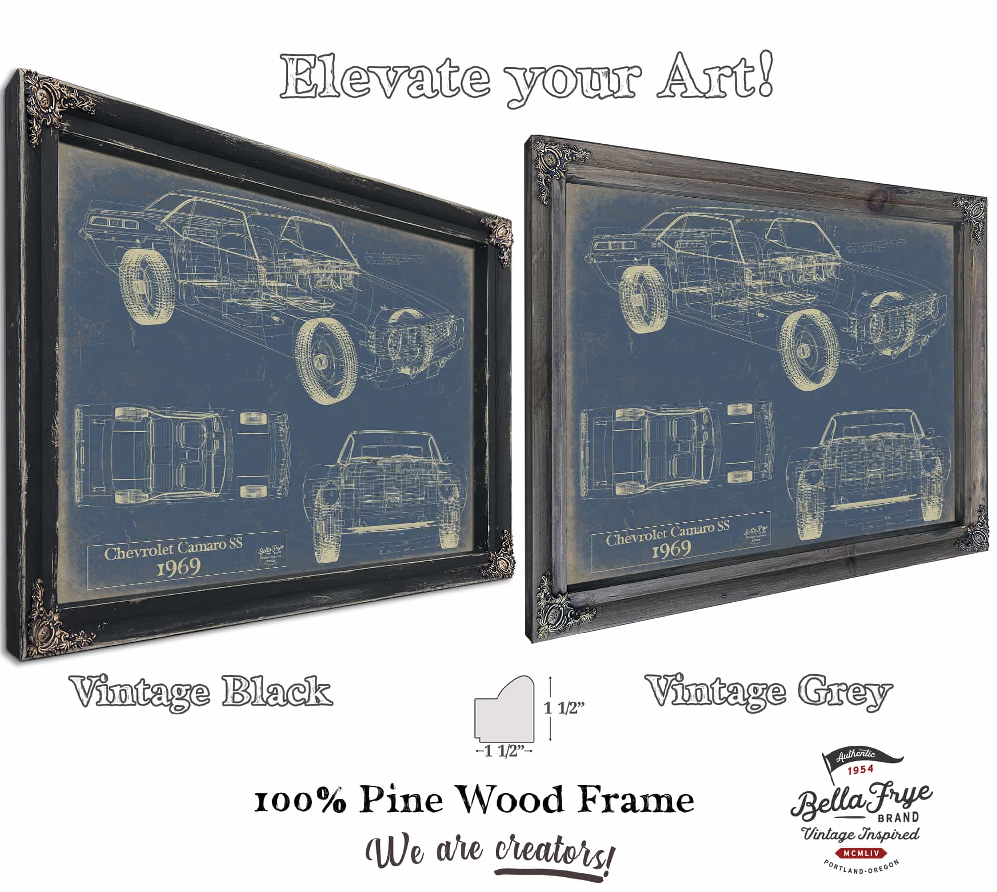 • Bella Frye Home & Garden > Decor > Artwork 24" x 18" / Grey Frame / Blue 1969 Chevrolet Camaro Ss  Original Artwork
