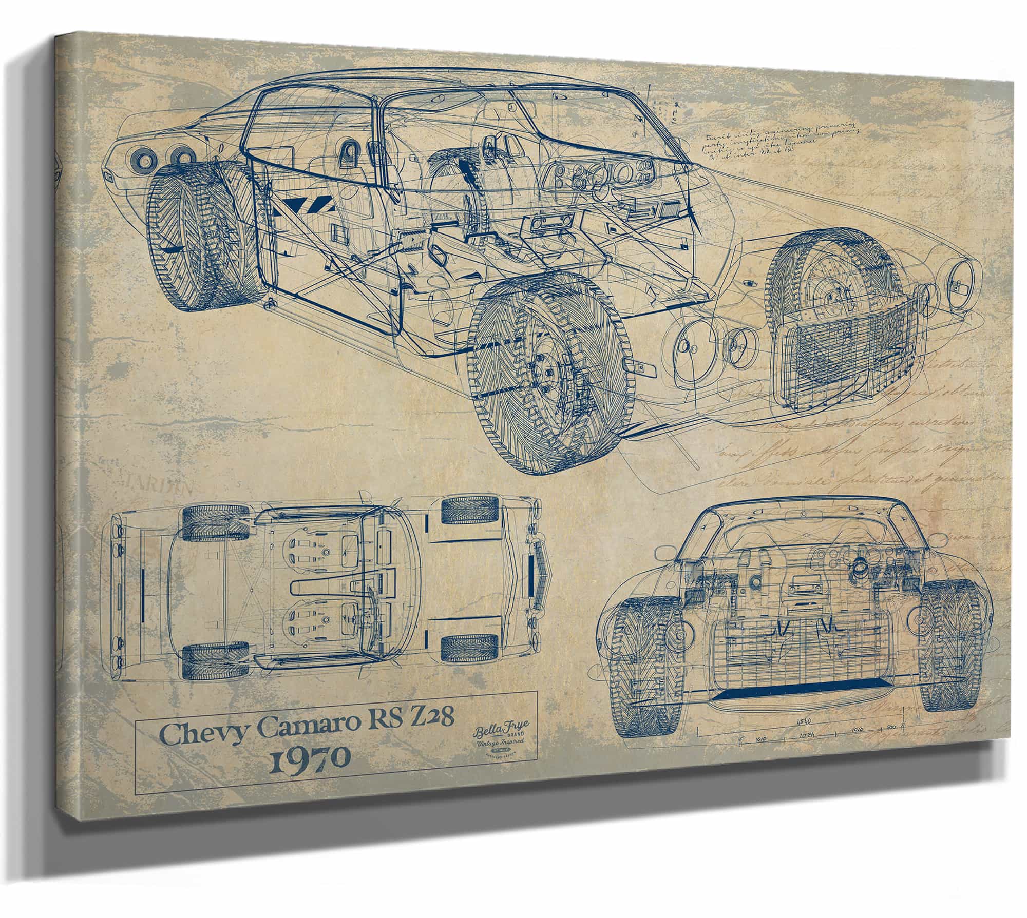 • Bella Frye Home & Garden > Decor > Artwork 24" x 18" / Stretched Canvas Wrap / Blue 1970 Chevrolet Camaro Rs z28  Original Artwork