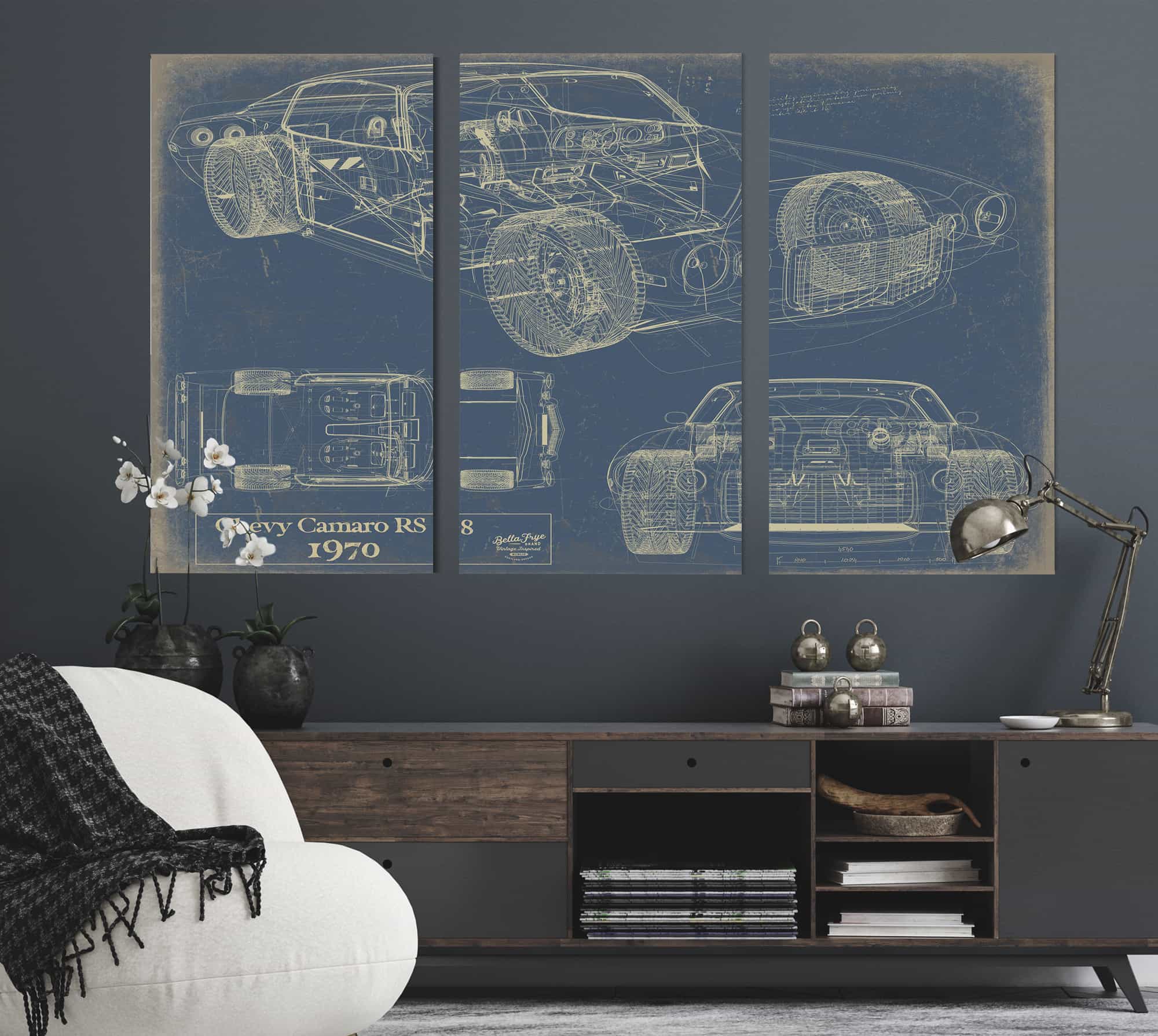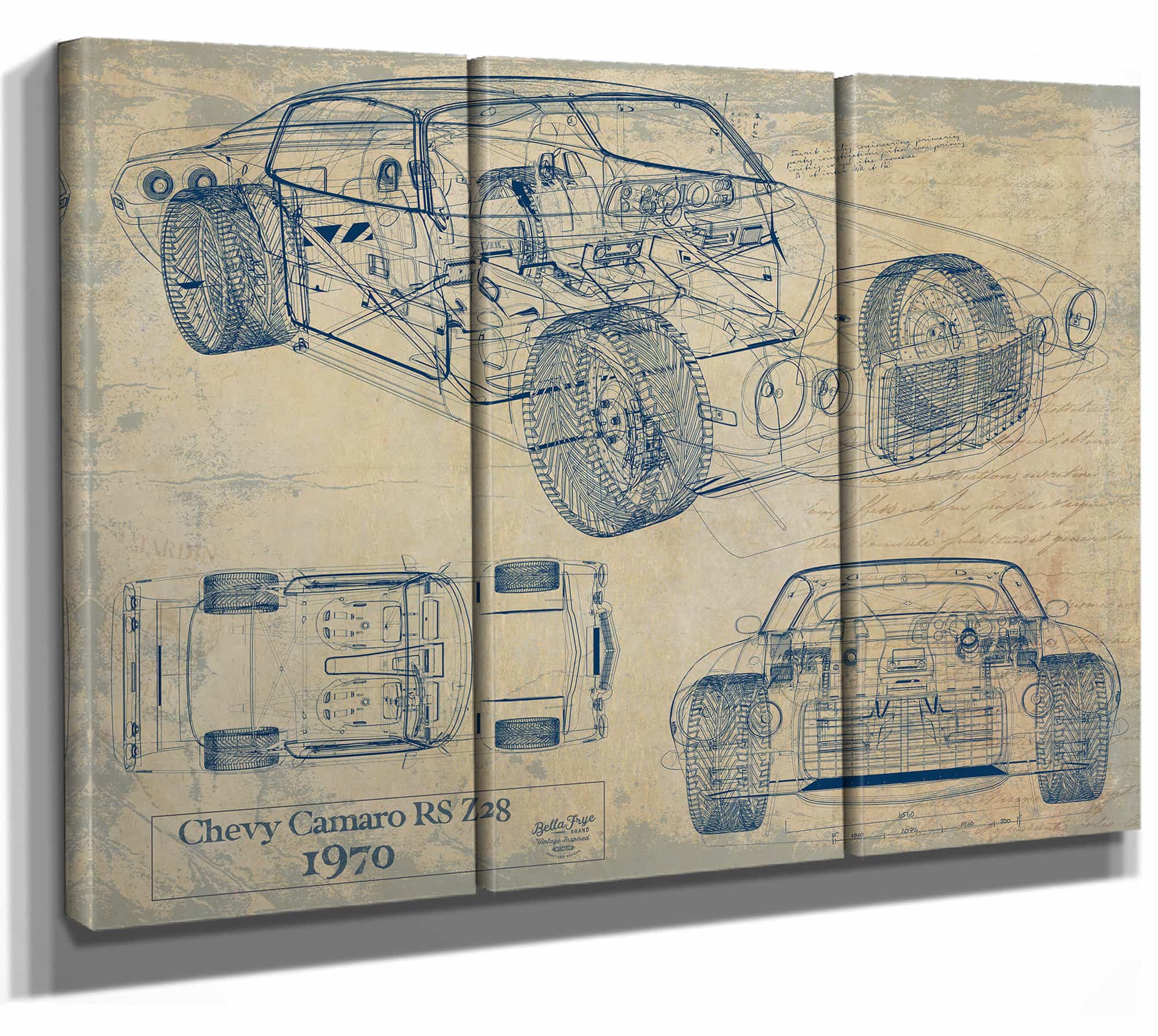 • Bella Frye Home & Garden > Decor > Artwork 36" x 24" / 3 Panel Canvas Wrap / Blue 1970 Chevrolet Camaro Rs z28  Original Artwork