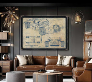 Featuring detailed, blueprint-style illustrations of legendary vehicles, these prints are perfect for gearheads, collectors, and anyone who appreciates timeless design and raw engine power.