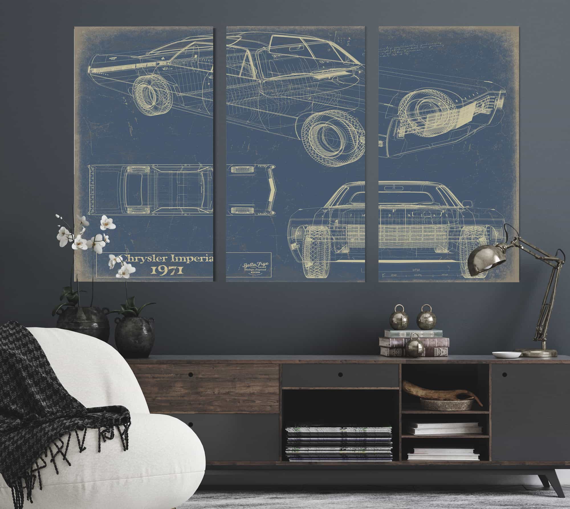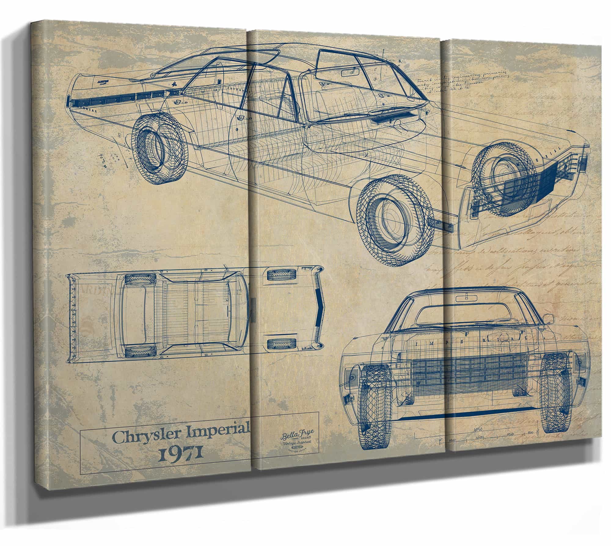 • Bella Frye Home & Garden > Decor > Artwork 36" x 24" / 3 Panel Canvas Wrap / Blue 1971 Chrysler Imperial  Original Artwork