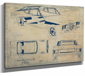 • Bella Frye Home & Garden > Decor > Artwork 24" x 18" / Stretched Canvas Wrap / Blue 1972 Chevrolet Nova Ss  Original Artwork