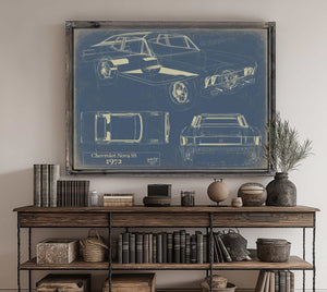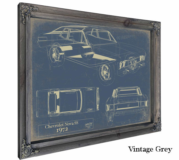 • Bella Frye Home & Garden > Decor > Artwork 24" x 18" / Grey Frame / Blue 1972 Chevrolet Nova Ss  Original Artwork
