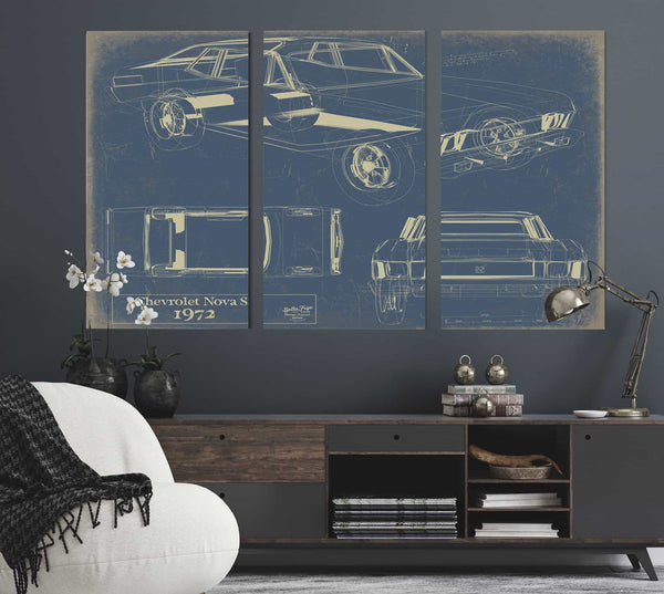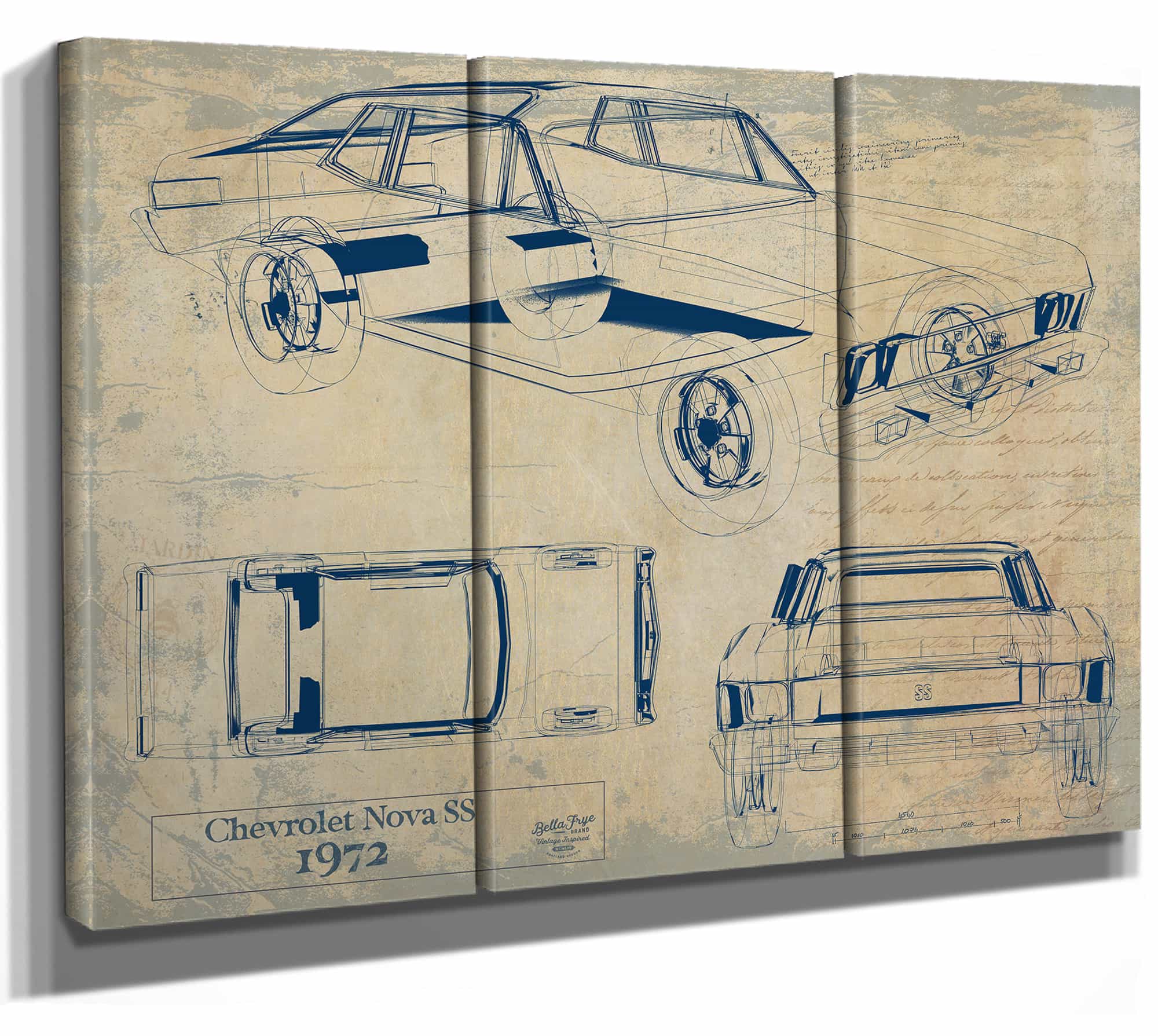 • Bella Frye Home & Garden > Decor > Artwork 36" x 24" / 3 Panel Canvas Wrap / Blue 1972 Chevrolet Nova Ss  Original Artwork
