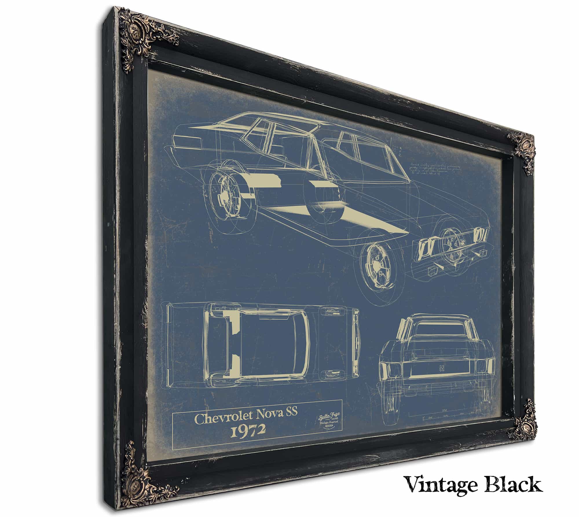 • Bella Frye Home & Garden > Decor > Artwork 24" x 18" / Black Frame / Blue 1972 Chevrolet Nova Ss  Original Artwork