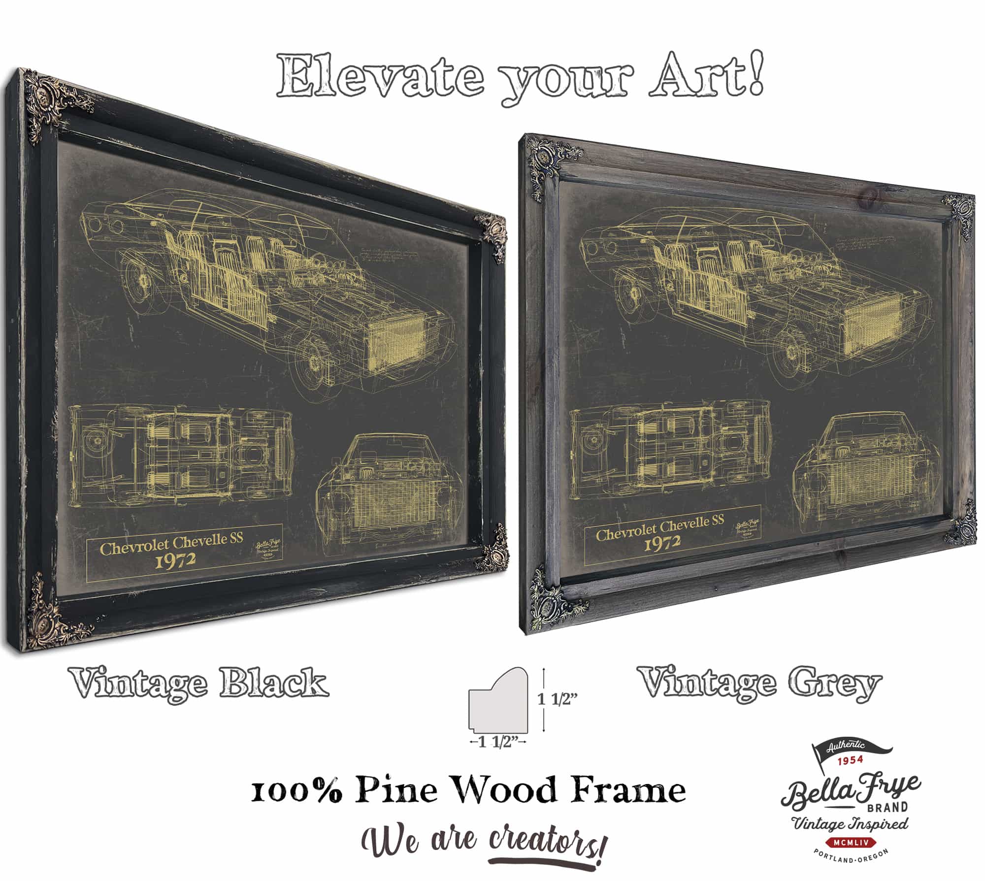 • Bella Frye Home & Garden > Decor > Artwork 24" x 18" / Grey Frame / Blue 1972 Chevelle Original Artwork