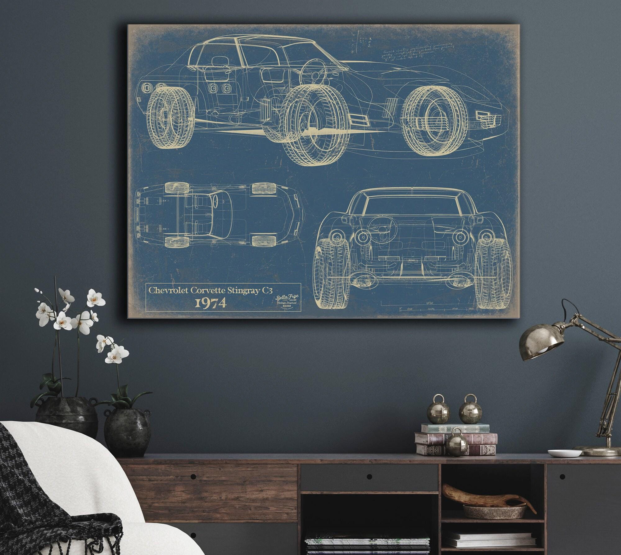 • 1974 Corvette Stingray C3 Blueprint Art: Vintage Car Model Print