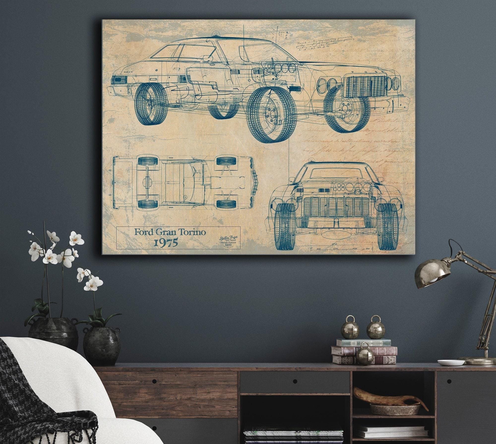 • Bella Frye 1975 Ford Gran Torino Blueprint Art: Vintage Car Model Print