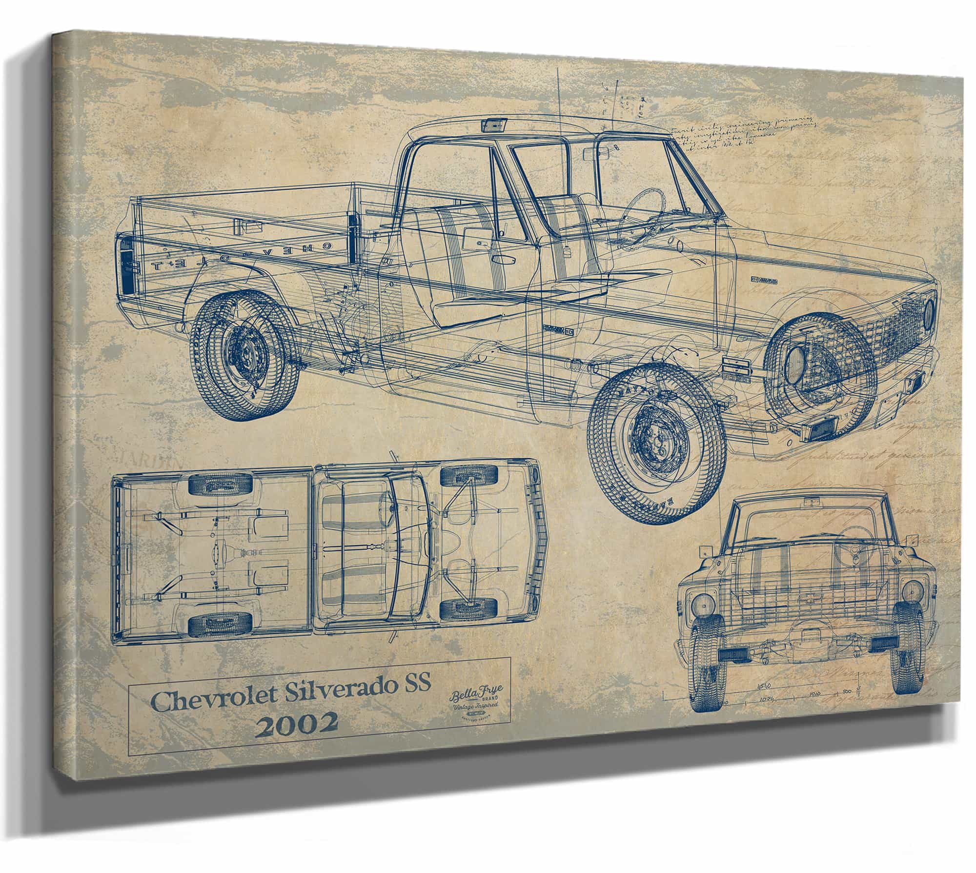• Bella Frye Home & Garden > Decor > Artwork 24" x 18" / Stretched Canvas Wrap / Blue 2002 Chevrolet Silverado Ss  Original Artwork