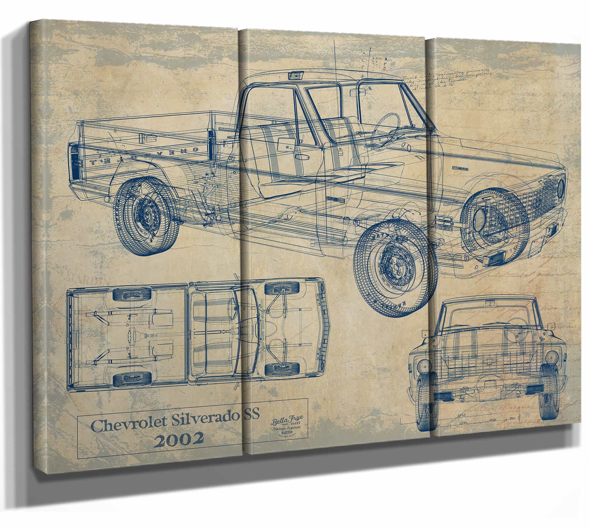 • Bella Frye Home & Garden > Decor > Artwork 36" x 24" / 3 Panel Canvas Wrap / Blue 2002 Chevrolet Silverado Ss  Original Artwork
