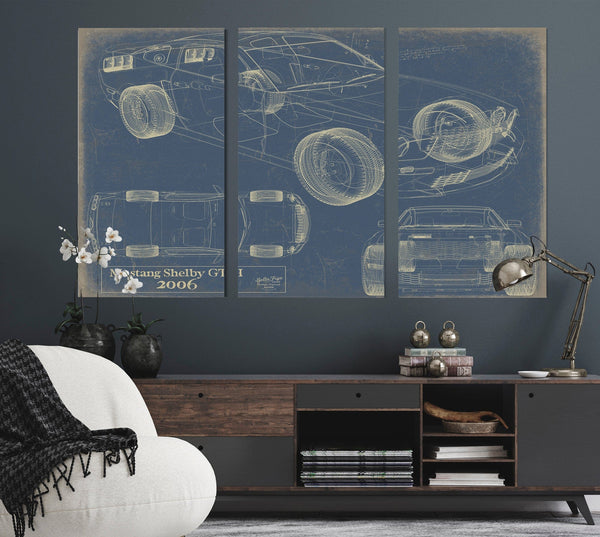 • Bella Frye Home & Garden > Decor > Artwork 36" x 24" / 3 Panel Canvas Wrap / Blue 2006 Ford Mustang Shelby Gt H  Original Artwork
