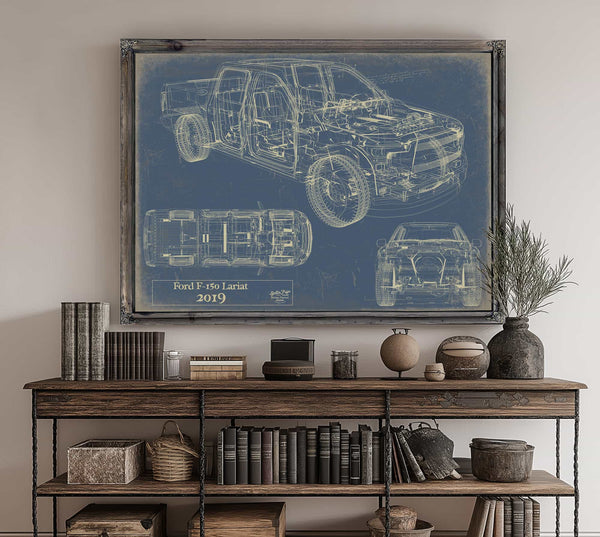 • Bella Frye Home & Garden > Decor > Artwork 24" x 18" / Grey Frame / Blue 2019 Ford F 150 Lariat  Original Artwork