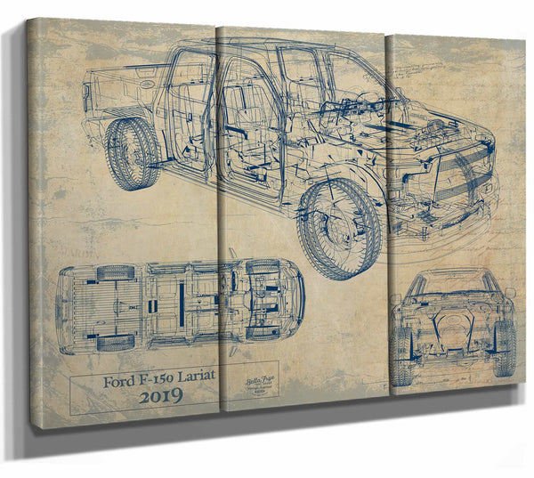 • Bella Frye Home & Garden > Decor > Artwork 36" x 24" / 3 Panel Canvas Wrap / Blue 2019 Ford F 150 Lariat  Original Artwork