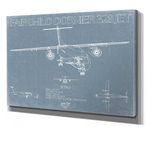 • Bella Frye Home & Garden > Decor > Artwork 24" x 18" / Stretched Canvas Wrap Fairchild Dornier 328JET Aircraft Blueprint Wall Art - Original Airplane Print