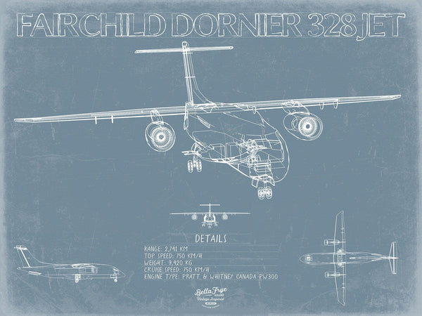 • Bella Frye Home & Garden > Decor > Artwork Fairchild Dornier 328JET Aircraft Blueprint Wall Art - Original Airplane Print