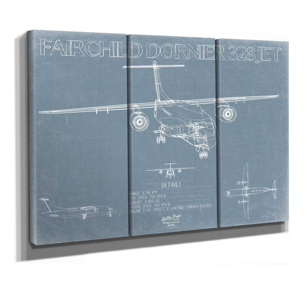 • Bella Frye Home & Garden > Decor > Artwork 60" x 40" / 3 Panel Canvas Wrap Fairchild Dornier 328JET Aircraft Blueprint Wall Art - Original Airplane Print