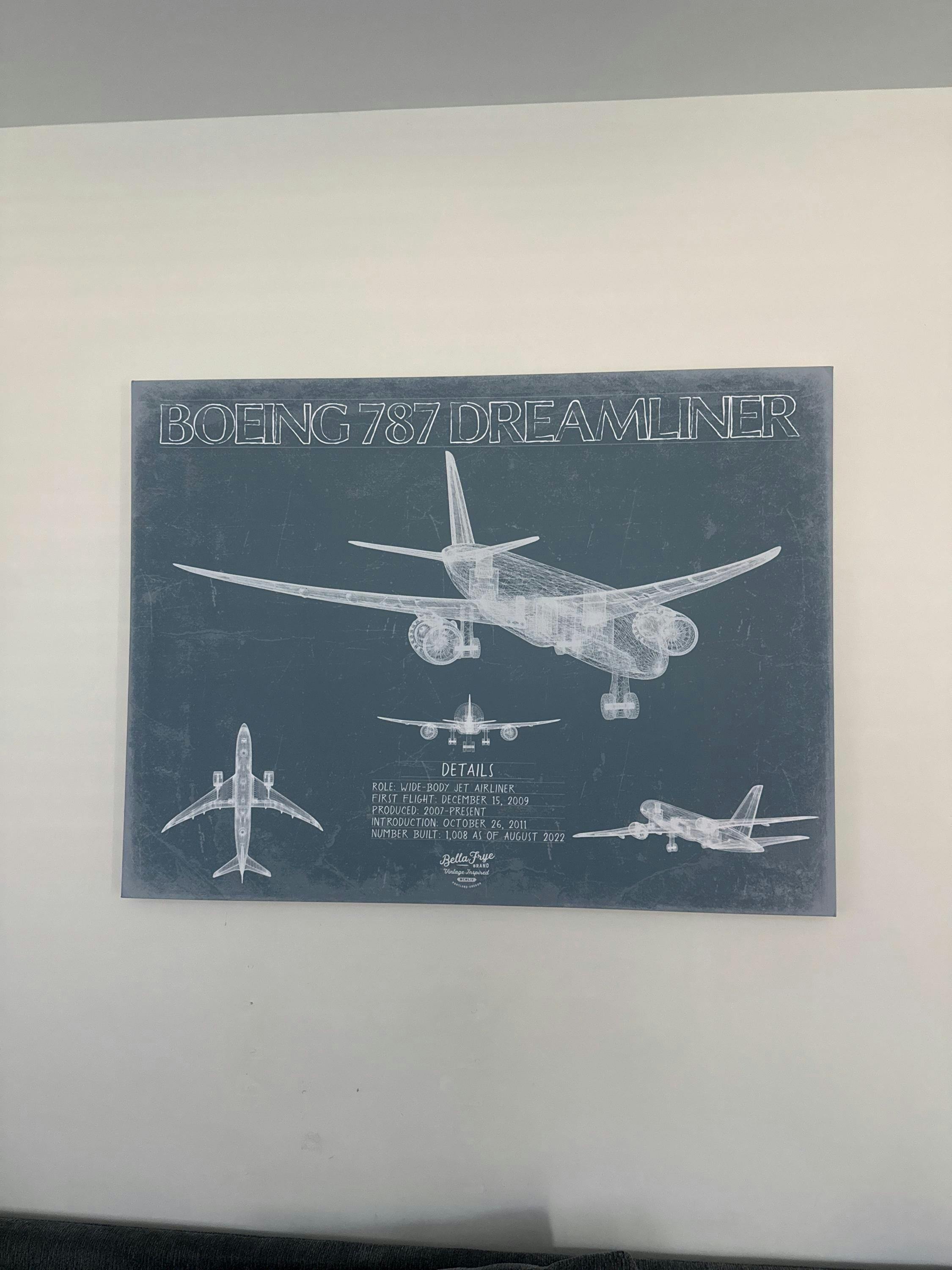• Bella Frye Home & Garden > Decor > Artwork Boeing 787 Dreamliner Aircraft Blueprint Wall Art - Original Aviation Plane Print