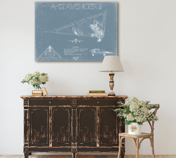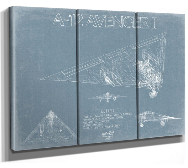 • Bella Frye Home & Garden > Decor > Artwork 24" x 18" / Stretched Canvas Wrap McDonnell Douglas A-12 AVENGER II Aircraft Blueprint Wall Art - Original Fighter Plane Print