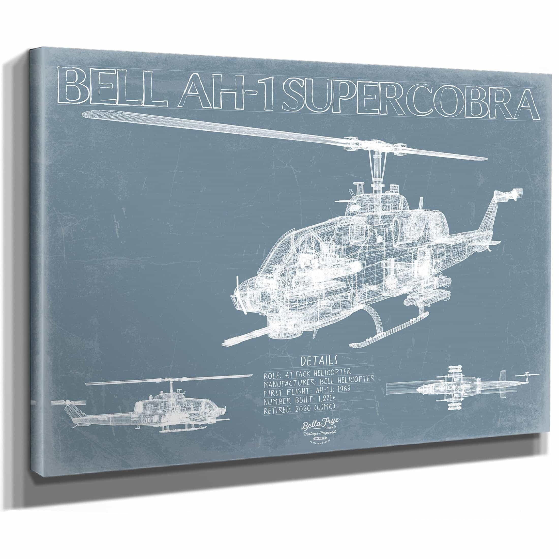 • Bella Frye Home & Garden > Decor > Artwork Bell AH-1 SuperCobra Helicopter Blueprint Wall Art - Original Aviation Print