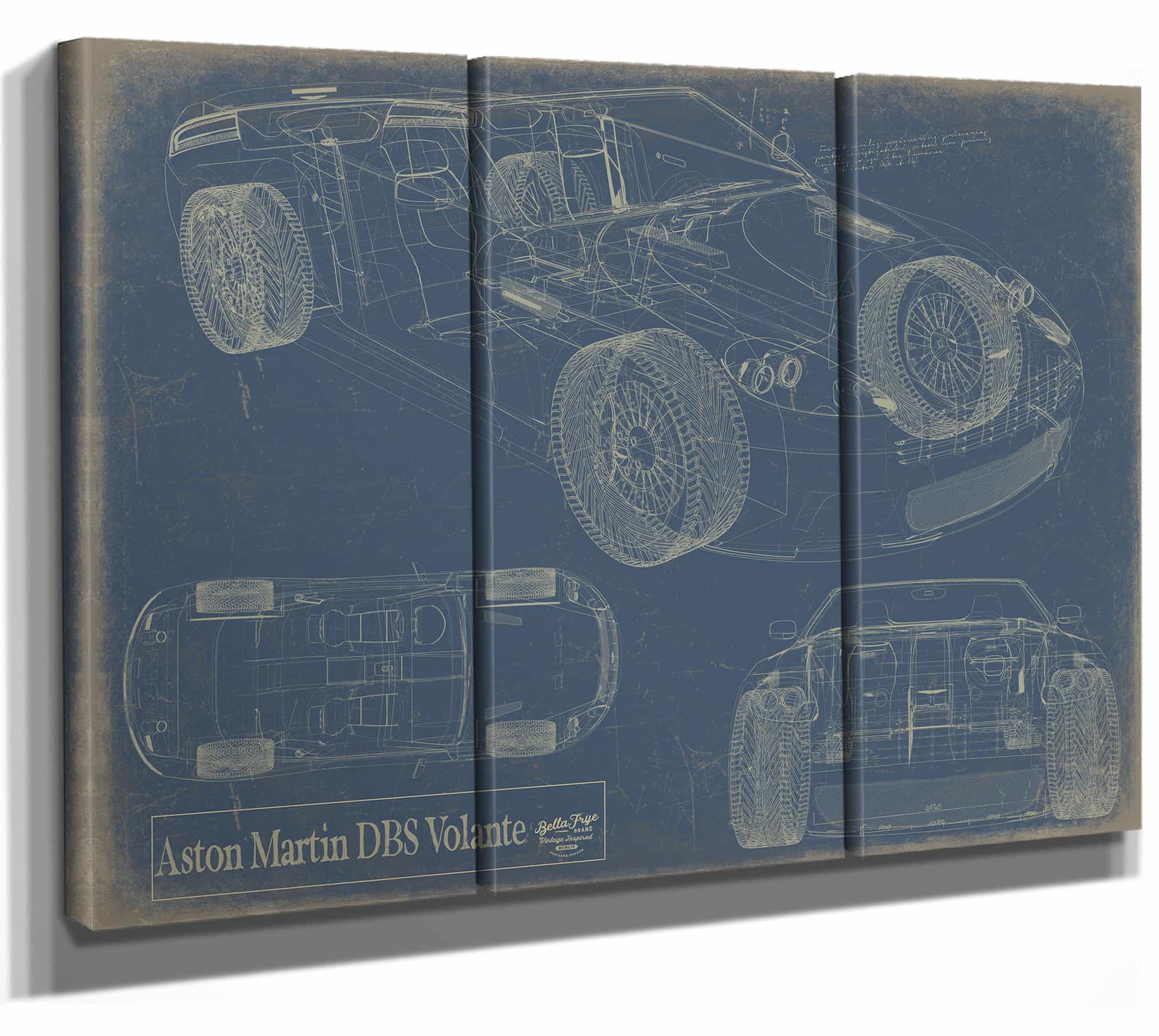 • Bella Frye Home & Garden > Decor > Artwork 36" x 24" / 3 Panel Canvas Wrap / Blue Aston Martin Dbs Volante  Original Artwork