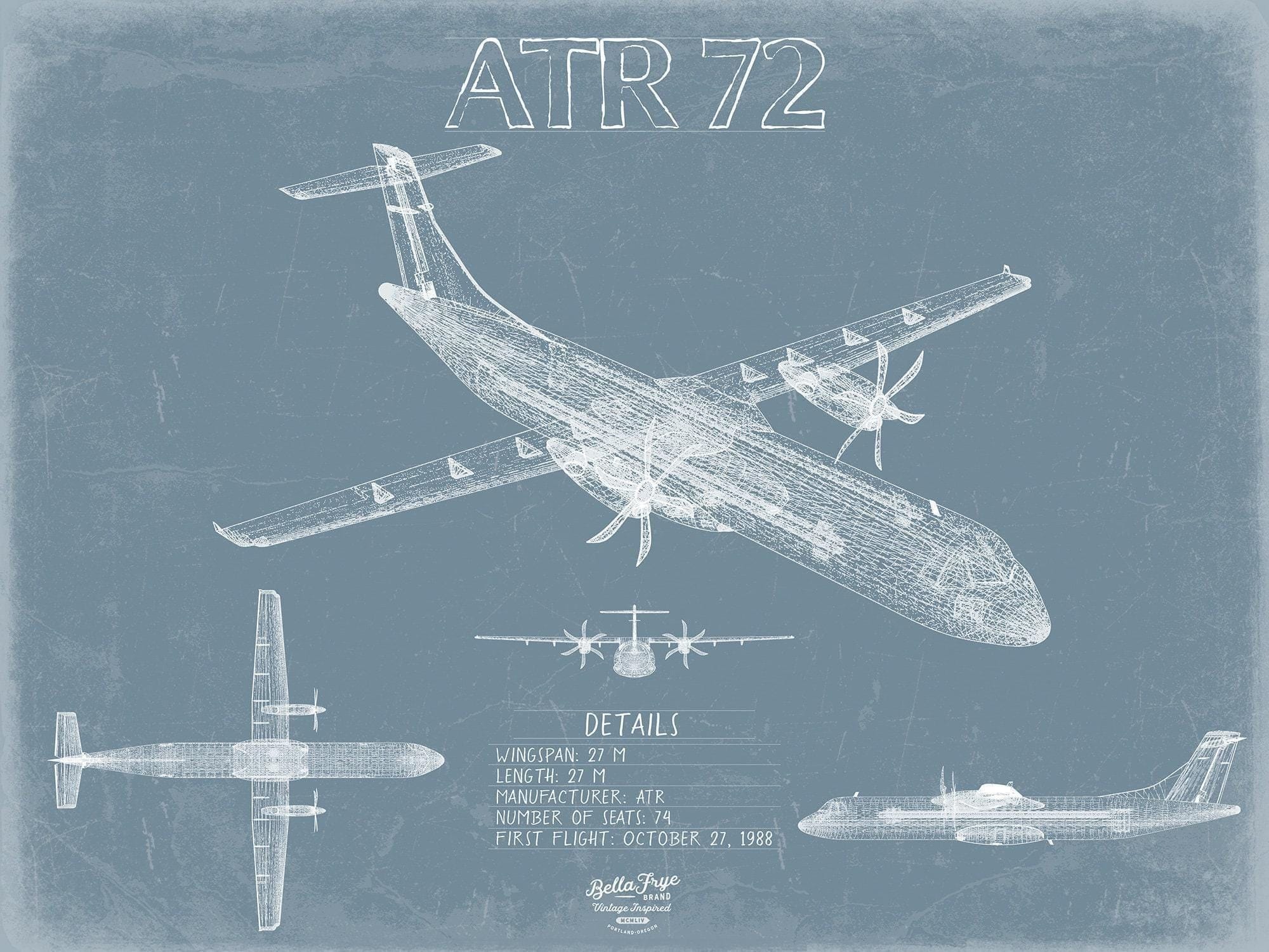 • Bella Frye Home & Garden > Decor > Artwork ATR 72 Aircraft Blueprint Wall Art - Original Aviation Plane Print